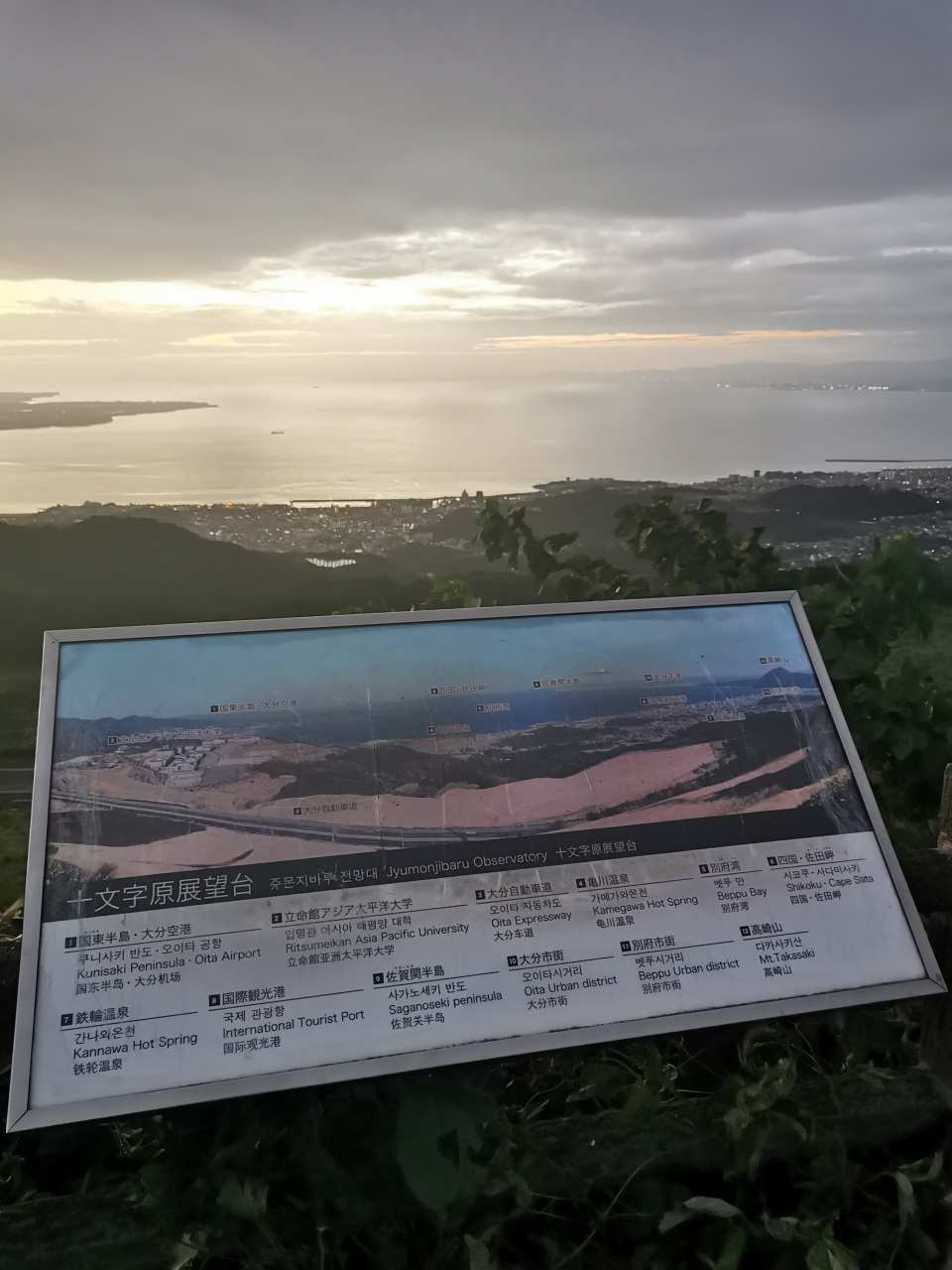ドライブ旅行で大分別府から阿蘇方面に移動。早朝に別府を出発して「十文字原展望台」に立ち寄りして日の出を見る事にしました。別府駅から車で30分ほど。別府は背面がすぐに山なので、急で狭い道路が続きました。十文字原展望台はTV局のアンテナタワーに囲まれた展望台で、まさに別府湾一望の素晴らしい景色を見る事ができました。早起きしてでも一見の価値があります。