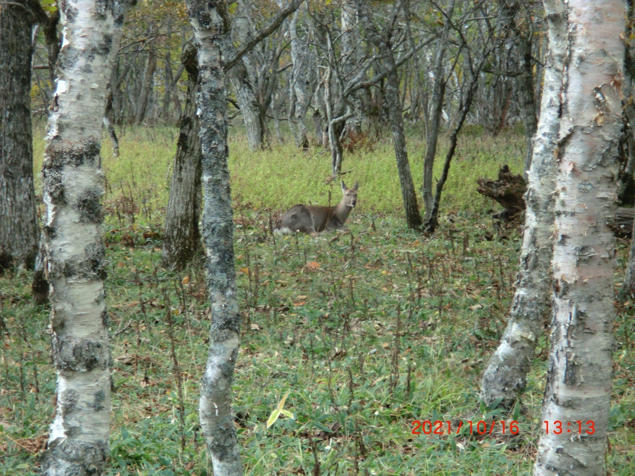 そこまで行く前に林の中に鹿を何回か見ましたが我々を見ても逃げず、人なれしてる感じで上手く写真が撮れました。その間20m位でした。