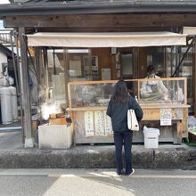 店先でおばあちゃんが手作りでよもぎ饅頭を作っています。