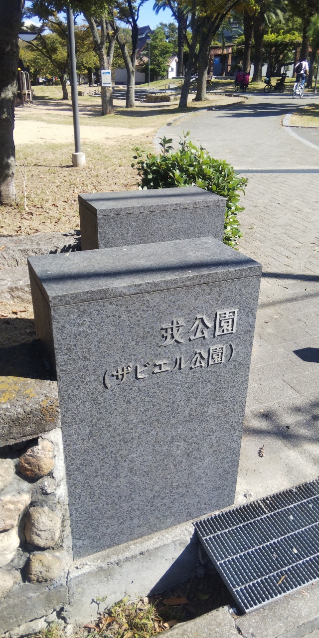ザビエル公園は、中世時代の堺の豪商とフランシスコ・ザビエルの絆を伝える公園だそうです。ただ現在は、遊具などがあるごく普通の公園です。ザビエルっぽいのは西側の入口に案内の看板があるぐらいです。広いしゆっくりできます。