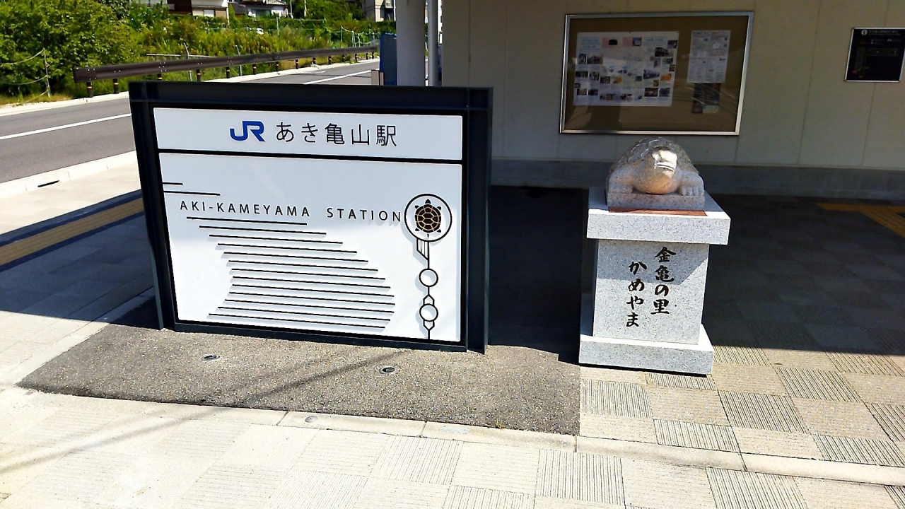 可部線に乗って広島からあき亀山駅へ向かいました。車両は広島地区でお馴染みのきれいな227系で快適に移動できました。路線は基本単線のようで進んでは駅で待ち合わせを繰り返しながら到着しました。あき亀山駅では亀の置物にお出迎えされました。駅前には建設中の大きな病院があり便利だと思います。