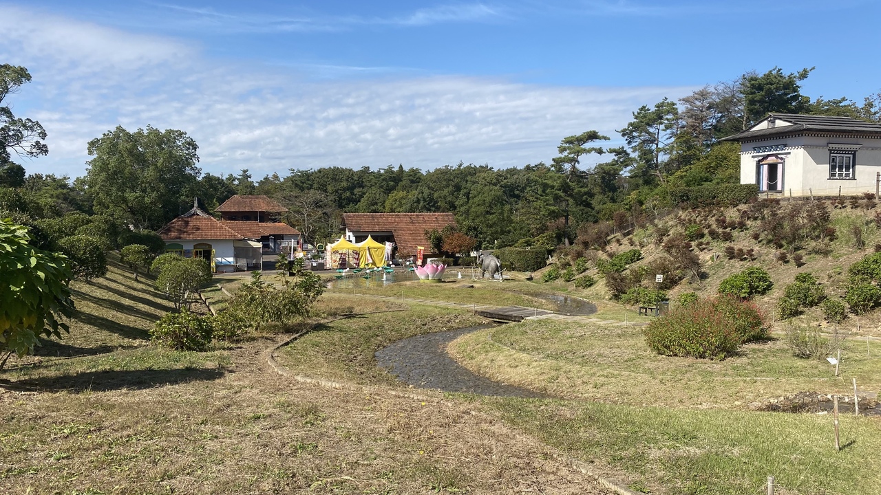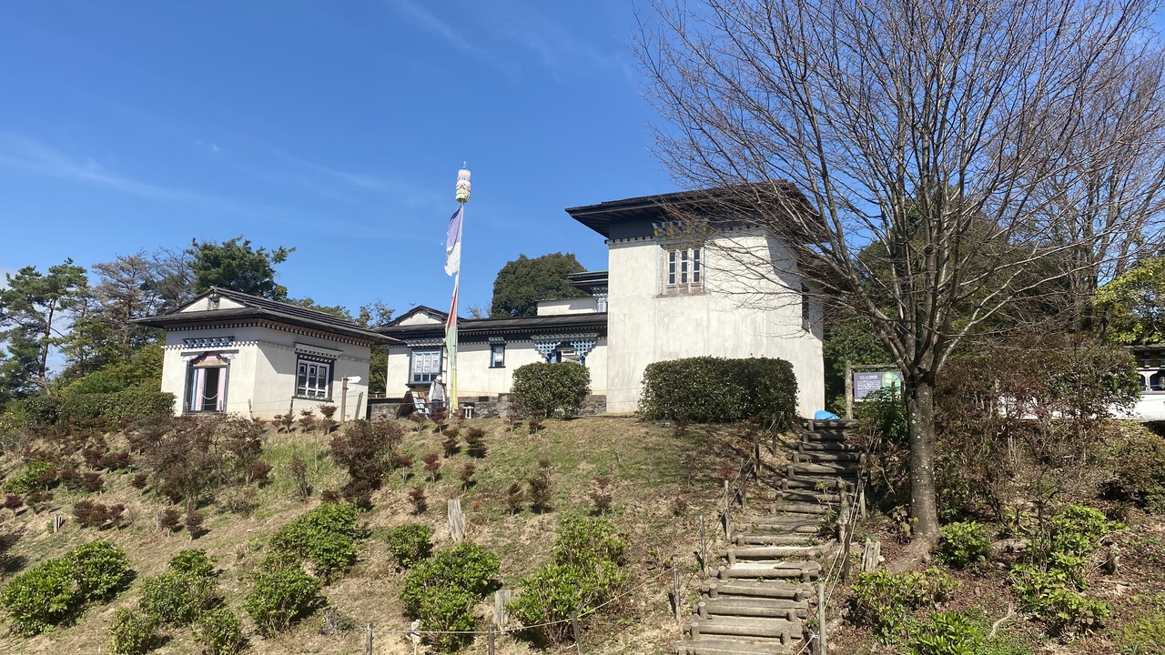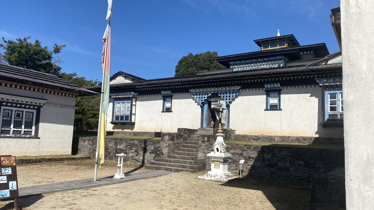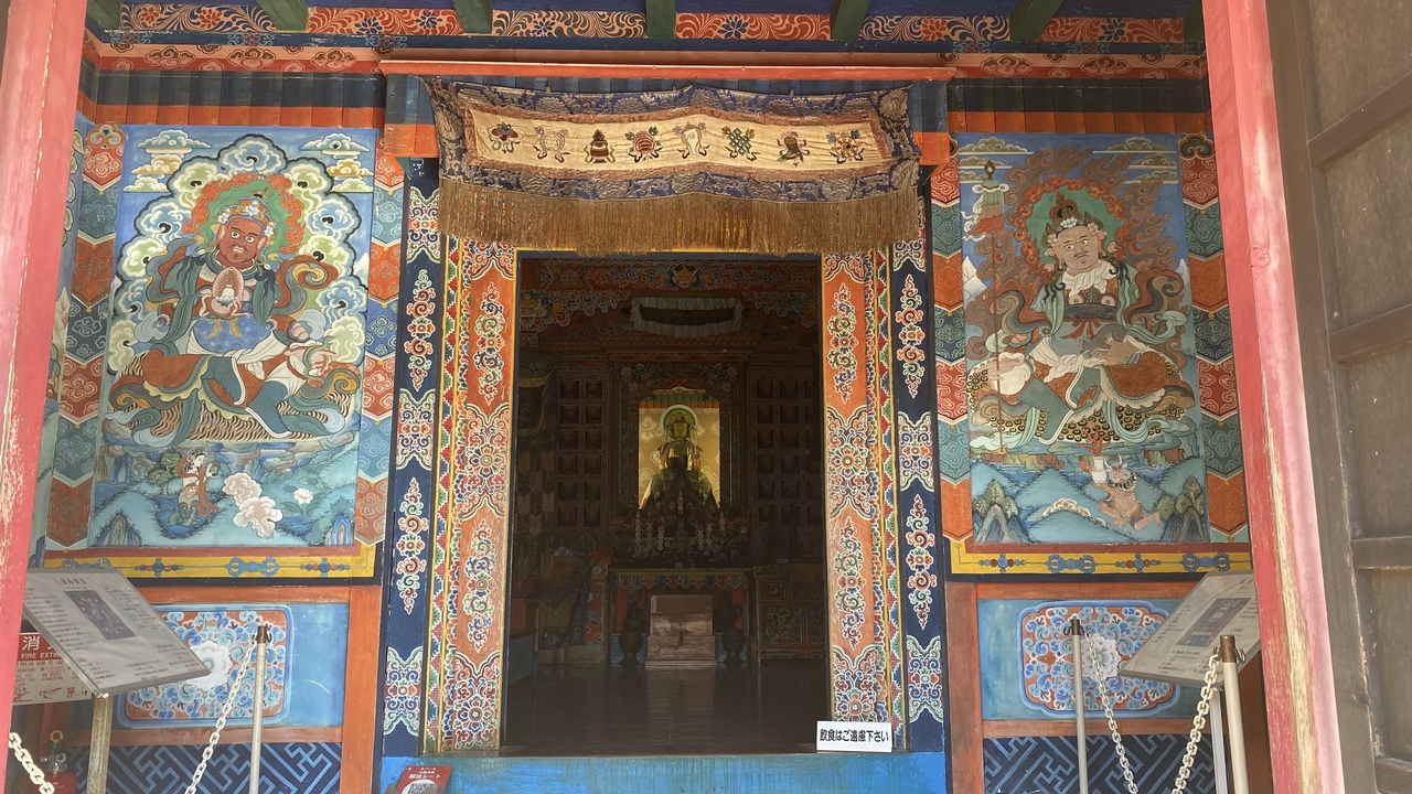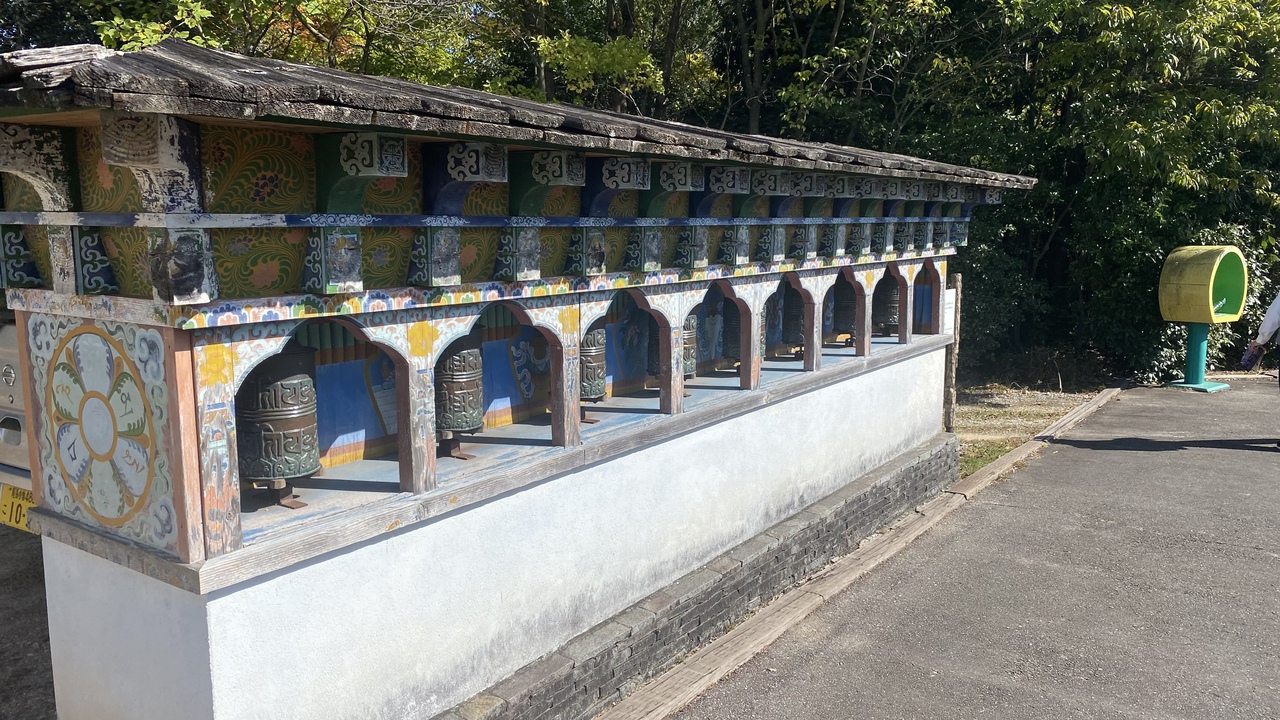 ヨーロッパから坂を登って降りる所の丘の上にあります。手前にドッグランがあり、階段を登ると、仏教寺院がそびえ立ってます。中には雑貨屋もあり、建物の中も非常に見応えあります。坂を降りるとインドにいけますよ。