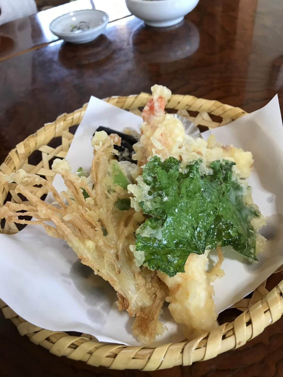人気の戸隠原産の蕎麦粉を用いた手打ちはお昼前に早くも売り切れで残念でしたが、普通の手打ち蕎麦をいただきました。さすが新蕎麦で蕎麦の香りが高く美味しかったです。