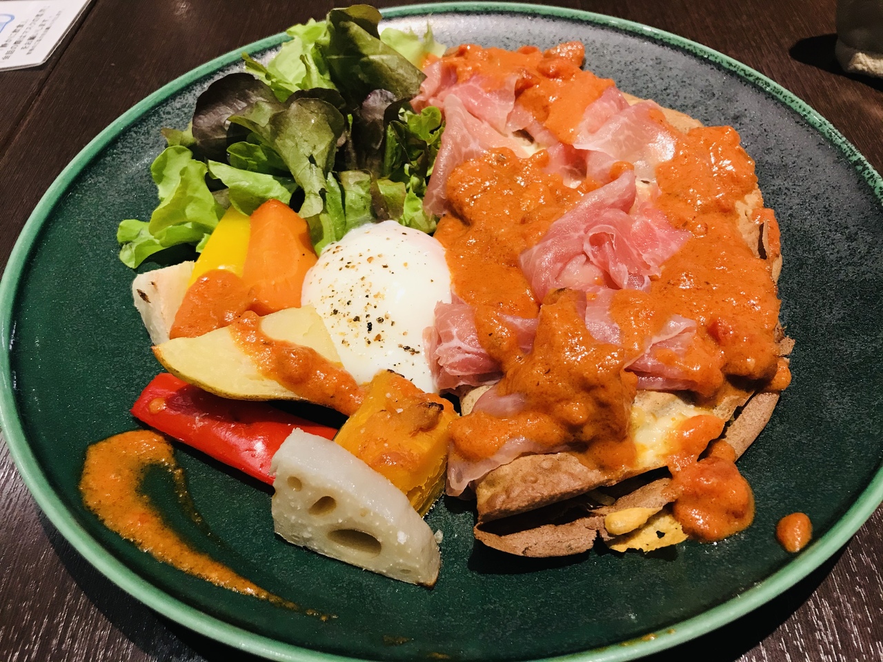 カフェといいつつ本格的なお料理もいただくことが出来、今回は生ハムとほうれん草のガレット(1300円くらいだったかな?)をいただきました。