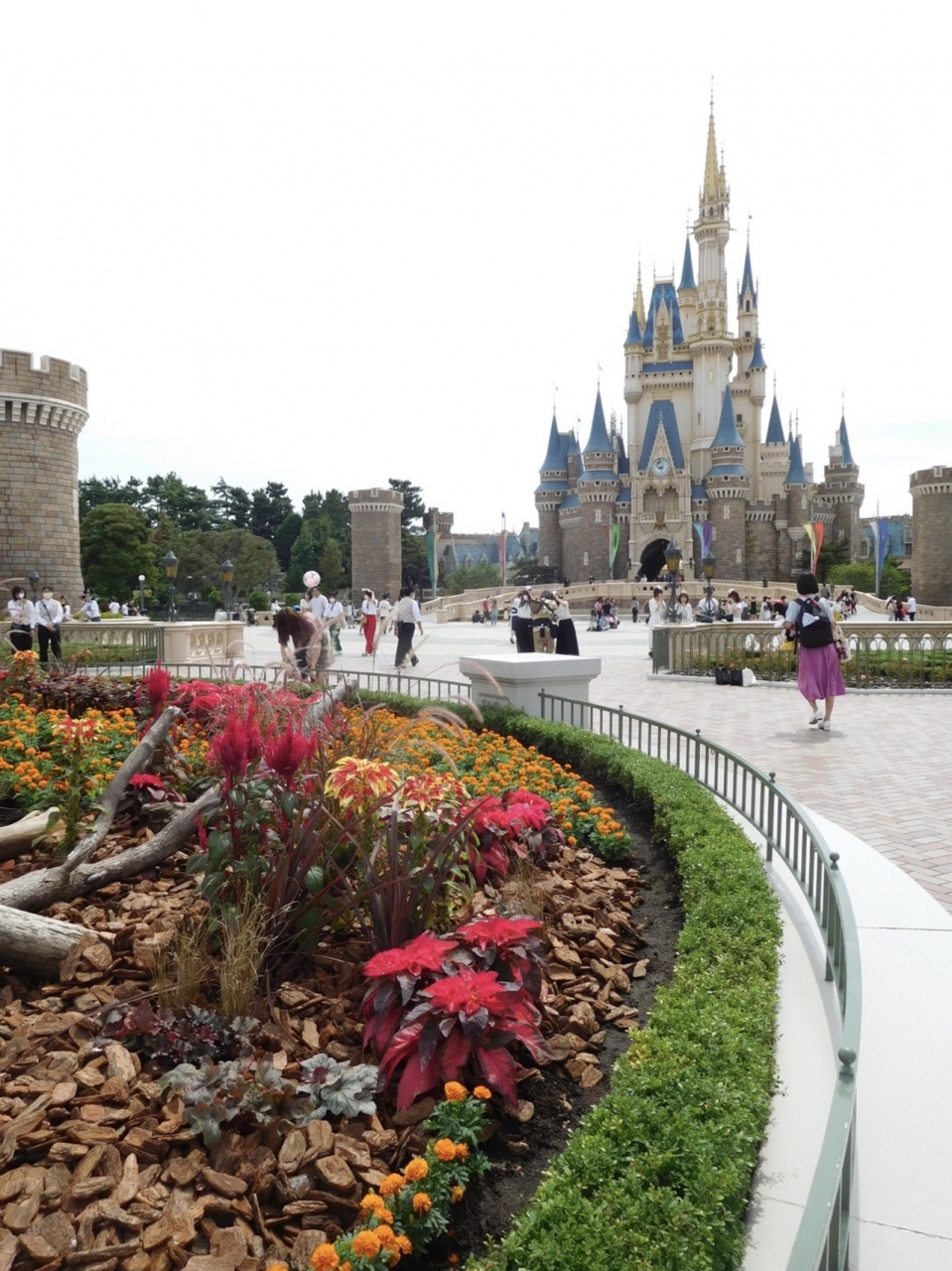 シンデレラ城前の花壇はすっかり秋の装いになっていて、お花以外に木やススキも使われていて、今まであまりなかった雰囲気になっていました。
