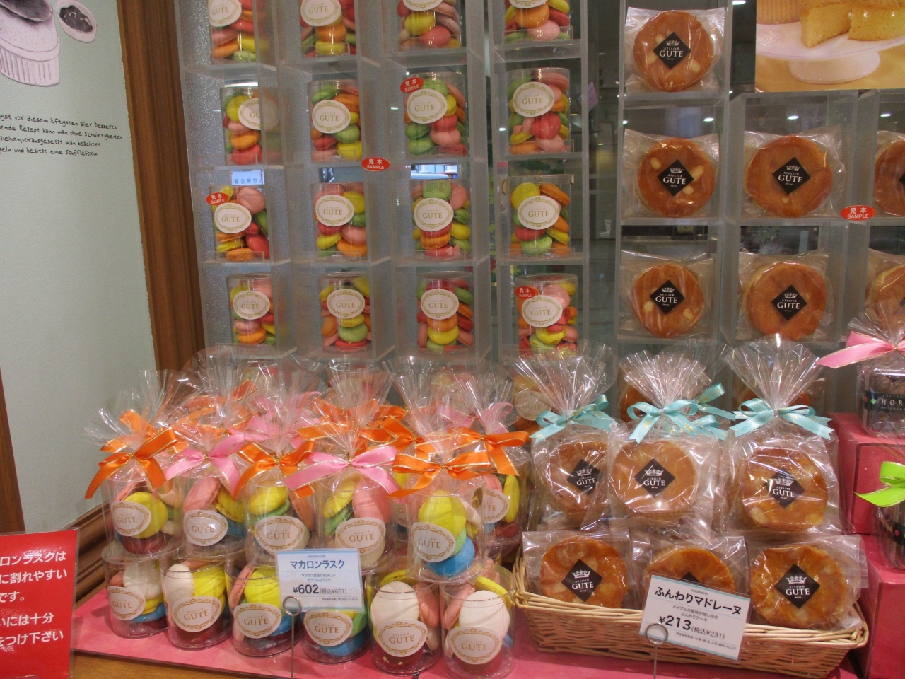 京阪百貨店ひらかた店 1Fにある洋菓子のお店です。駅直結で百貨店の入り口を入ってすぐそばなので立ち寄りやすいです。かわいらしい雰囲気のお店で、カラフルなマカロンなどが目をひきました。エーワンベーカリー系列とは初めて知りました。