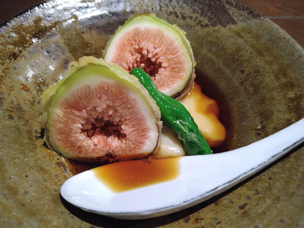 4,300円のランチコースは、前菜、お椀、お造り、お蕎麦の豆乳つけ汁、無花果天ぷらと濃厚胡麻豆腐、蝦夷鹿のロースト、蕎麦の実の焼き菓子など、今まで食べたことのないようなお蕎麦を使った料理は大変面白く美味しくいただきました!