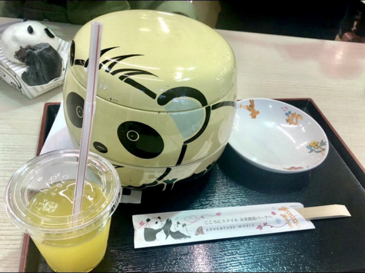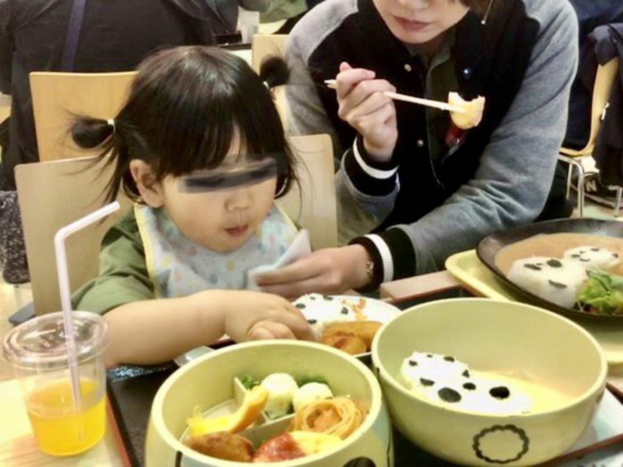 マァムは、アドベンチャーワールドのエンジョイドームの一階にあるカフェテリアで、孫姫は、キャラクター弁当にしました。いわゆるお子様ランチの丼バージョン。