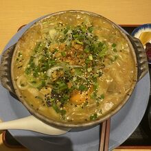 神田カレーグランプリに参加しているお店のためランチにて利用いたしました。カレーモツうどんをいただきました。ネギがたくさんのっており、アツアツのカレーともよくあい、もつもプリプリでおいしくいただけました。