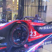 銀座4丁目の交差点角に銀座プレイスという透かし彫りをモチーフにしたお洒落なビルがあります。そのビルの1階と2階が日産のショールームです。外からレーシングカーなどの展示を見ることができます。興味がある人が多いのか写真を撮っていく人、見ていく人が多いと思いました。夜は車がライトを浴びて華やかでした。