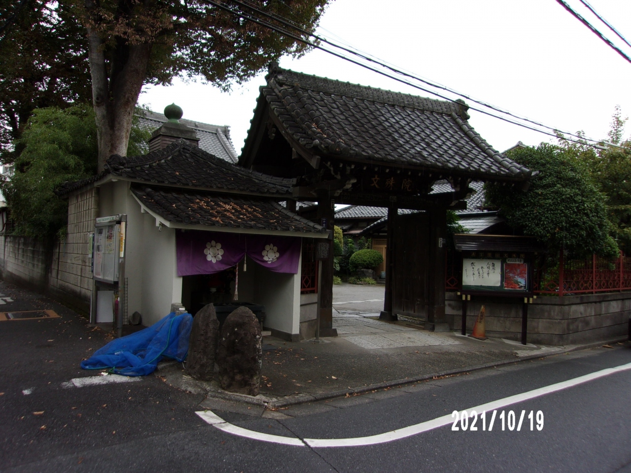 この文殊院 (幡場山大聖寺)は江戸時代の五街道の一つである中山道の最初の宿場町である板橋宿沿いにあります。真言宗豊山派の寺で17世紀初めに創建されました。延命地蔵を祀っています。山門脇には石の地蔵尊があります。山門を入るとすぐに閻魔堂があります。この板橋宿の中の仲宿の本陣をたまわった飯田家の菩提寺です。山門は存在感があります。