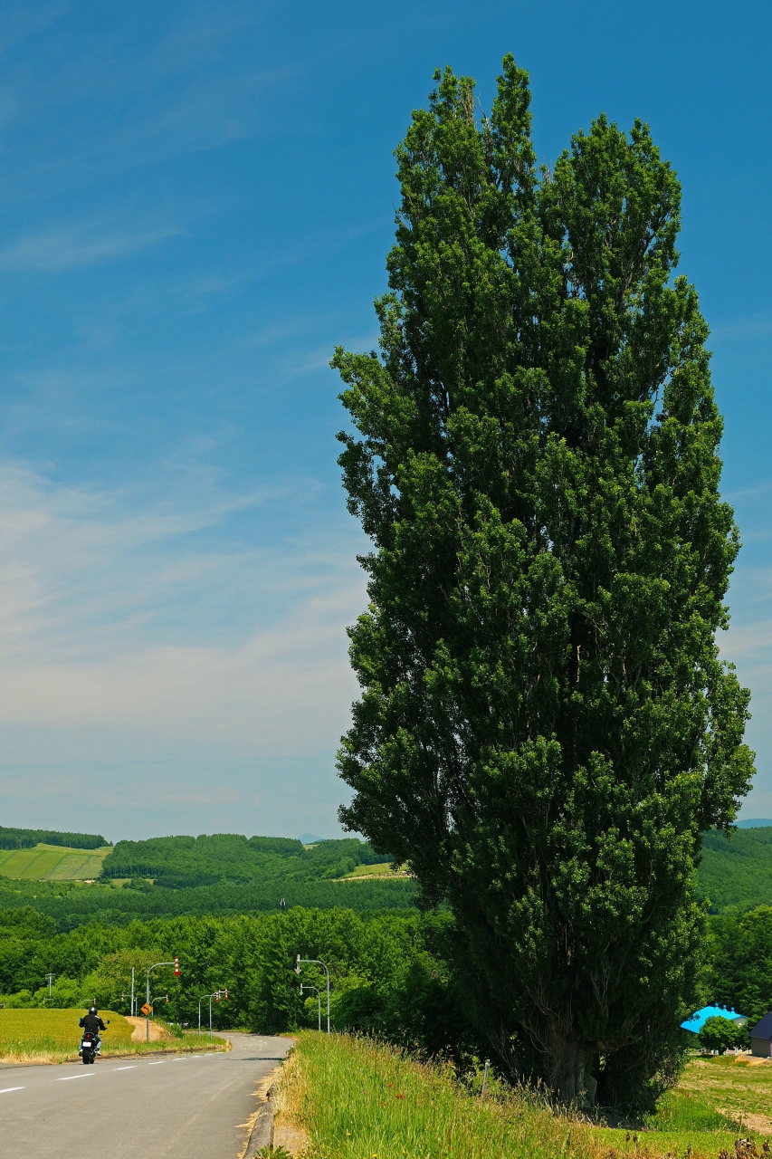 昔のスカイラインのCMに登場した、美瑛の丘を象徴する風景として有名なケンとメリーの木。