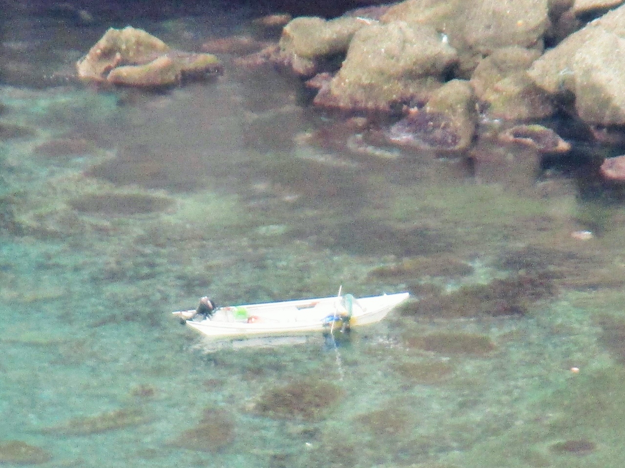 坂を下って行こうと、砂浜の方へ下りる道の方へ。