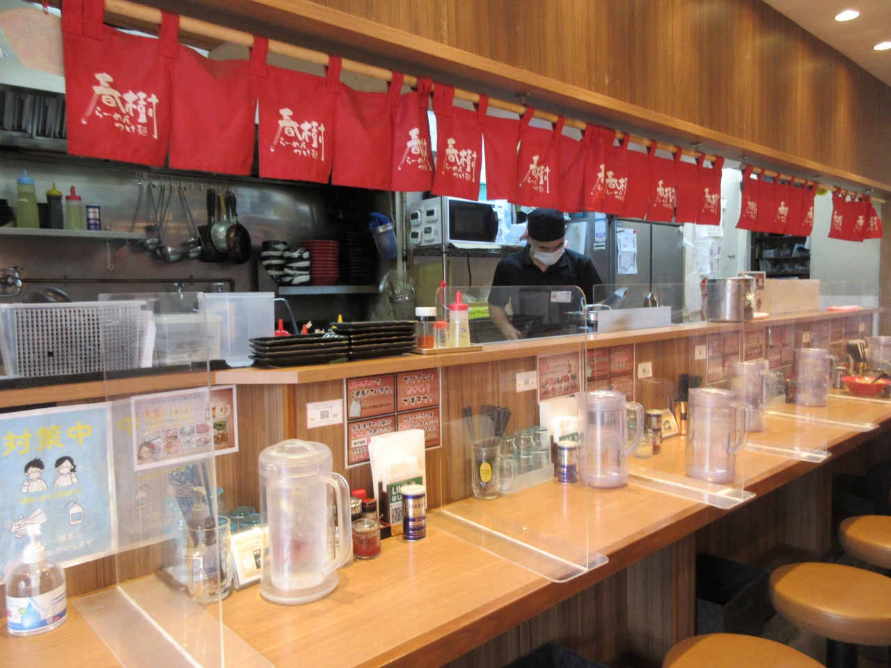 新大塚駅そばの大塚5丁目交差点近くにあるラーメン店です。新大塚駅近くで昼食をしようと初めて入りました。平日11時半過ぎは先客が一人でした。春樹醤油拉麺大盛とえび豚骨塩拉麺を頼みました。春樹醤油拉麺はまろやかで甘みを感じる醤油のスープに細麺が絡み美味しかったです。えび豚骨塩拉麺は海老の香りと味がしっかりするスープで少し辛味もあり、細麺と合いました。ご飯はセルフで自由に食べられます。後から来た人はご飯をよそって拉麺と食べていました。太麺のつけ麺も美味しそうでした。