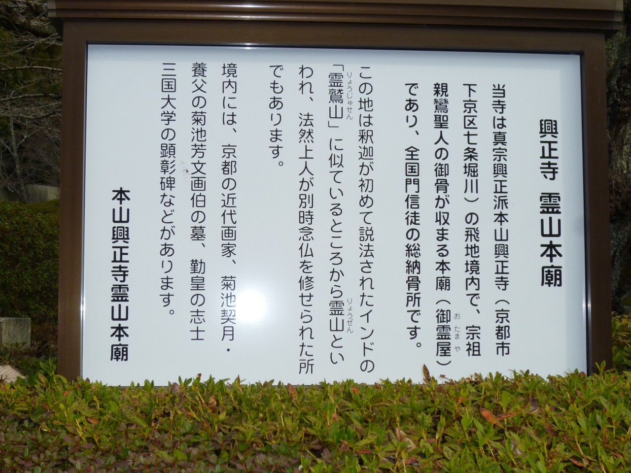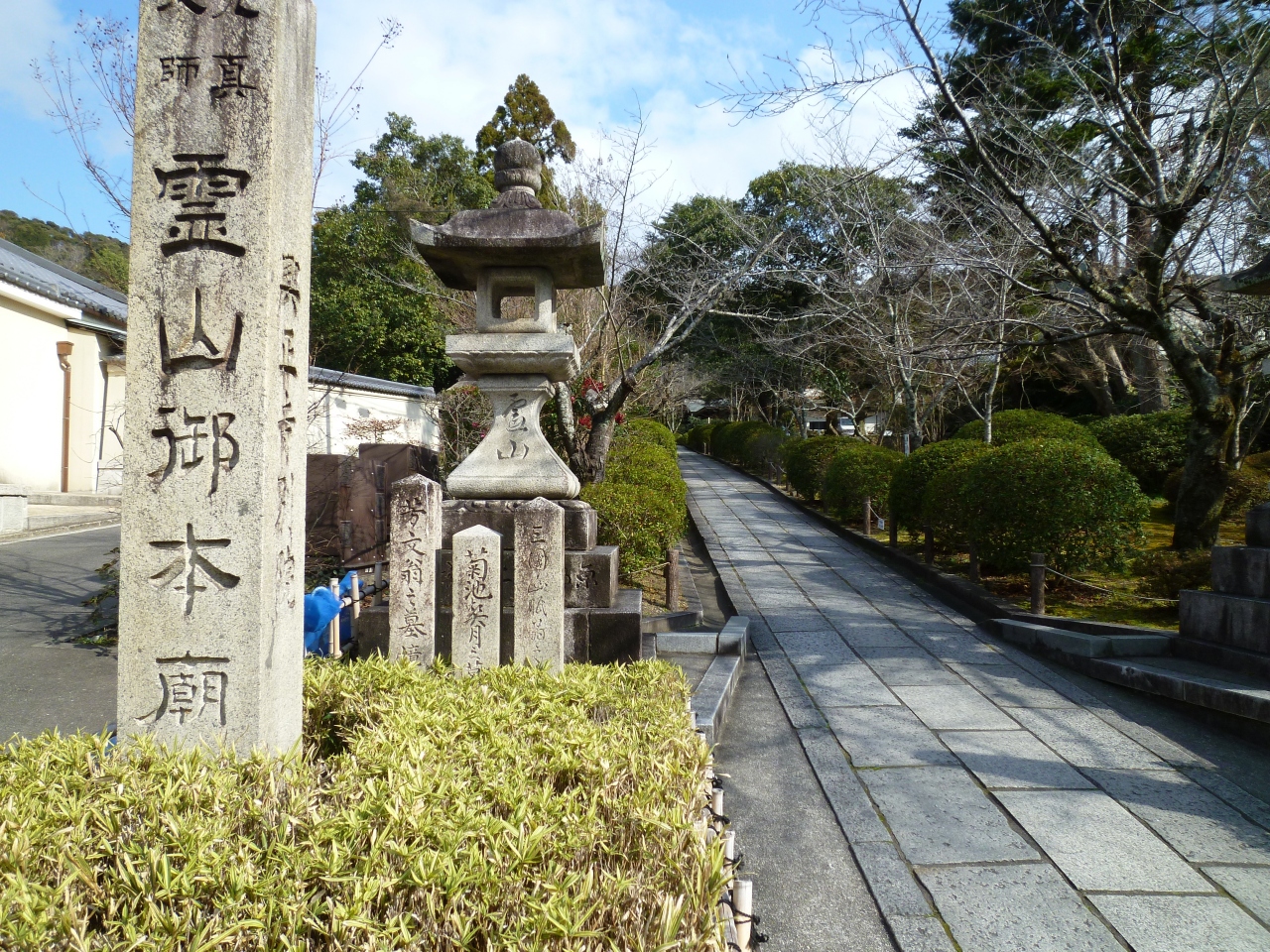 霊山本廟は、宗祖親鸞聖人のご廟所で、全国の興正派門信徒のご遺骨をお納めする場所となっています。霊山本廟は京都東山三十六峰の一つ、霊山の麓、清水寺、産寧坂から二年坂を経て高台寺、祇園円山公園に至る散策路の中間に位置しています。本山興正寺は明治九年、本願寺からの別派独立に伴い、この地を本廟としています。三年坂から霊山本廟へ至る石畳がとても立派でした。