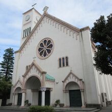 学芸大学駅から徒歩15分ほど、バス通りのサレジオ通りに建つカトリック教会です。礼拝堂や鐘楼は明るいパステルカラーで、高さ36mの鐘楼は遠くからでも見えます。外観のみの見学でも、礼拝堂の各ステンドグラスを外から見ることができます。教会の掲示板の下に、目黒区みどりの散歩道の説明板があり礼拝堂内の写真がありました。後で教会のホームページで美しい礼拝堂内の様子を見ました。教会の歴史と活動を知ることができました。幼稚園が併設されています。