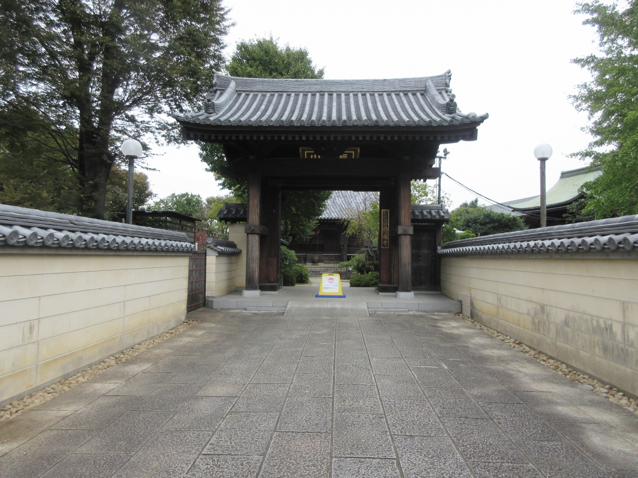 都立大学駅から徒歩8分ほどのところに建つ、1624年創建日蓮宗寺院です。円融寺の末寺でしたが、円融寺が天台宗に改宗してから、身延山久遠寺の末寺になりました。木造山門の奥に木造瓦屋根の本堂が建っています。本堂前に日蓮上人像があります。墓地は広く、墓参する人がいました。樹木葬の区画があるのも特徴です。本堂の右に大きな建物がありました。寺務所のようで墓参の人が声をかけていましたが、近代的な建物の外にはテラス席のようなテーブル席がありました。後で調べると、日本拳法道場のようで、練習が行われる建物のようでした。スポーツの道場を持っている寺院は珍しく印象深かったです。