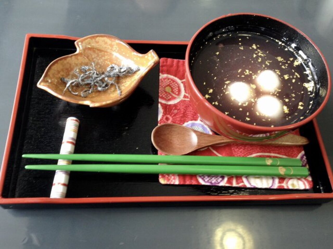 兼六園の入り口近くに、一列に並んだ土産店やカフェなどがあります。その中のいちばん手前(金沢城側)のお店が、見城亭でした。食べたのは、ぜんざいです。金沢らしく、ぜんざいには金箔が散りばめてありました。まさに金沢に来た!って感じになりました。カフェは2階で金沢城がより素敵に見えました。