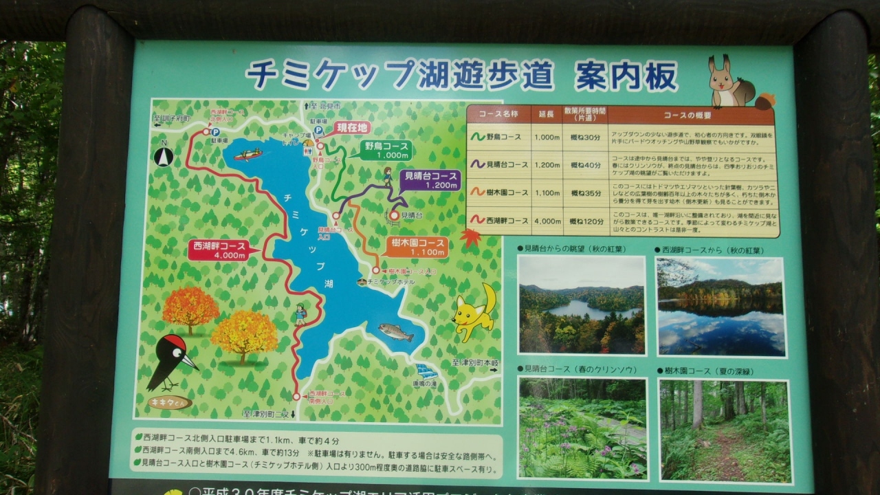 チミケップ湖は北見の山の中の堰止湖であり、湖畔には、町営無料キャンプ場と、離れて小さなホテルが一軒あるだけで、人家はない。