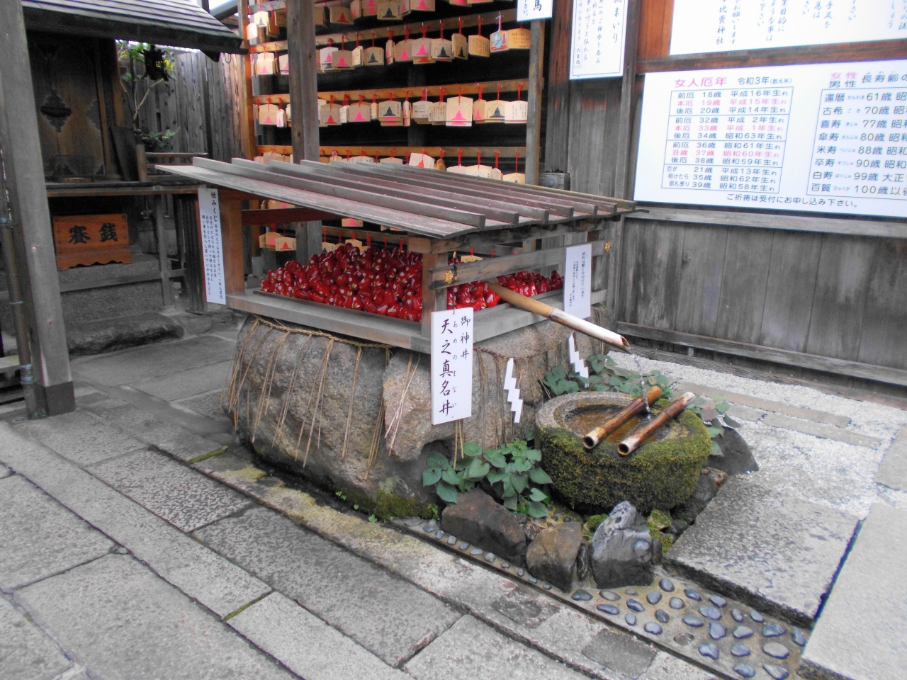 境内にある「天之真名井」は落陽の七名水の一つに数えられるご神水、「一願成就の井戸」として信仰を集めています。