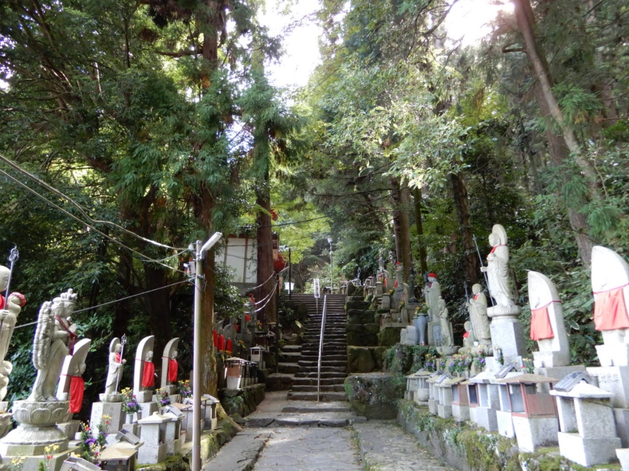 弘法大師らしく高野山を彷彿とさせる石仏と石段です