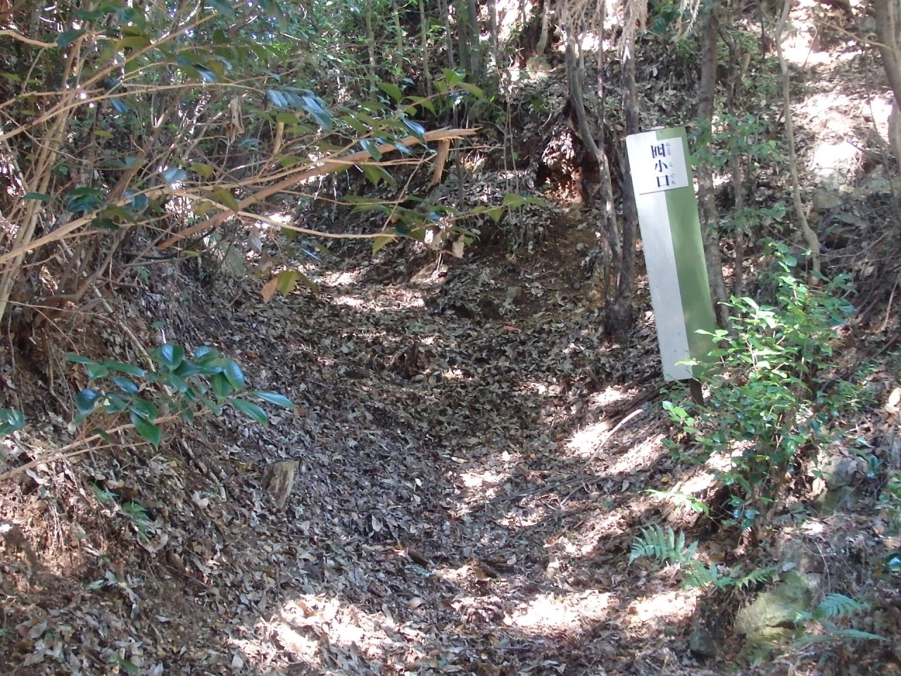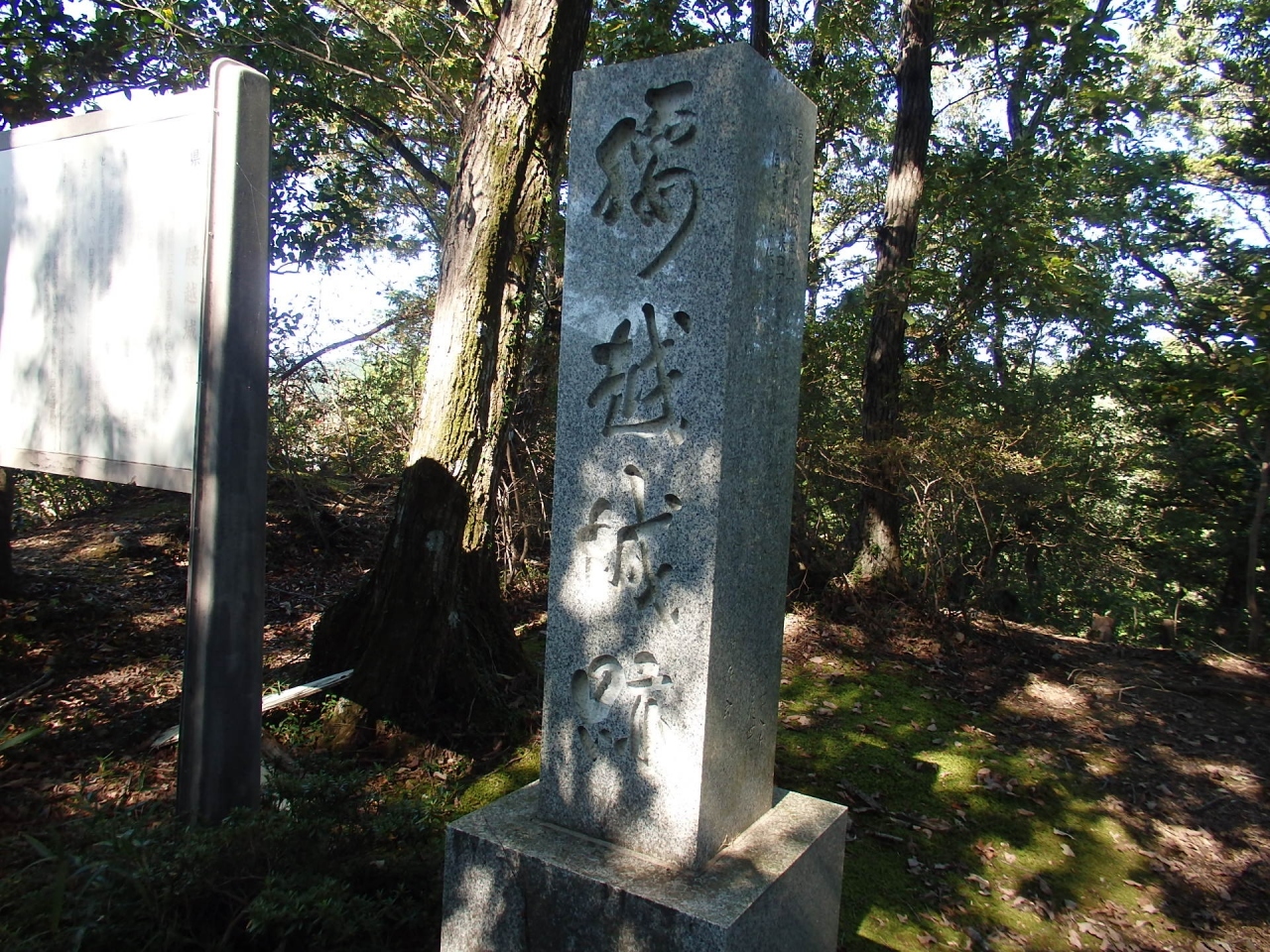 腰越城の築城主は伝山田直定、築城年十六世紀中ごろ、1590年落城します。腰越城木戸門通過し山道に入り、急登りの木段を15分ほど登ると 堀切に到着します。すぐに並行してもう一つ堀切があり、二重堀切になっています。二の郭、次に本郭に到着、本郭城址碑、本末跡碑、腰越城説明版が建っています。本郭を出て虎口、竪堀・堀切、西の郭、囮虎口、土塁を見ます。囮虎口というのを初めて知りました。本郭は大きな郭ではありませんが、多くの山城遺構が残っており見られます。続日本100名城に相当する城址です。お城ファンには見逃せないお城です
