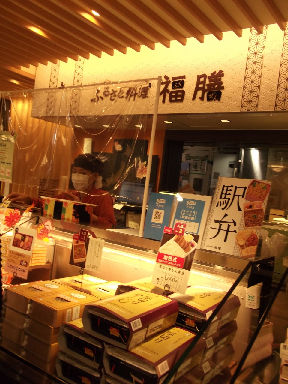 東京駅改札内のエキュートにある、郷土料理のお弁当のショップです。人気No1という牛肉どまん中弁当を購入しました。牛そぼろがご飯の上にたっぷり載っていて、ほどよい味噌味がご飯とよく合います。煮物、かまぼこなどのおかずも付いていて、良いアクセントになっていました。