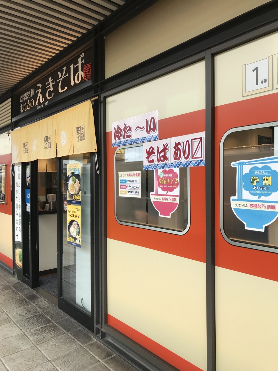 姫路のホームにあるお店ですが、列車の形の可愛い外観で、若い女性でも入りやすい雰囲気になっています。中華そばとおだしという組み合わせが意外にもバッチリです。学割もあるので、学生さんにはありがたいですね。14時から17時はタイムサービスもありますよ。