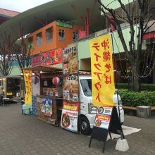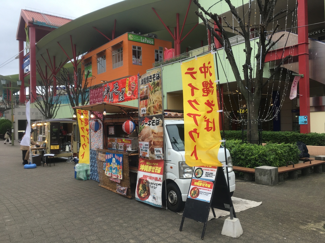 海老名駅の東口、商業施設「ビナウォーク」に囲まれ、野外ステージやモニュメント、水場など配置された広場です。縮小した相模国分寺の「七重の塔」は海老名のシンボル的存在となっています。この日は沖縄そばやコーヒーのキッチンカーが数台営業していました。コロナ前には祝祭日にイベントも開催されていました。