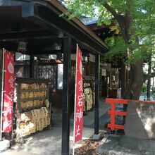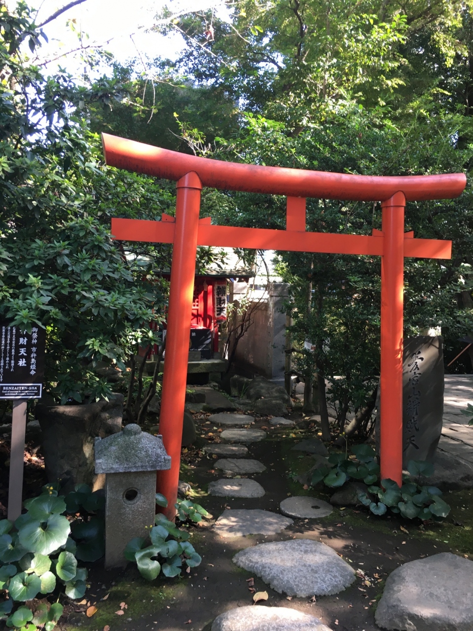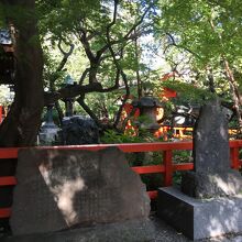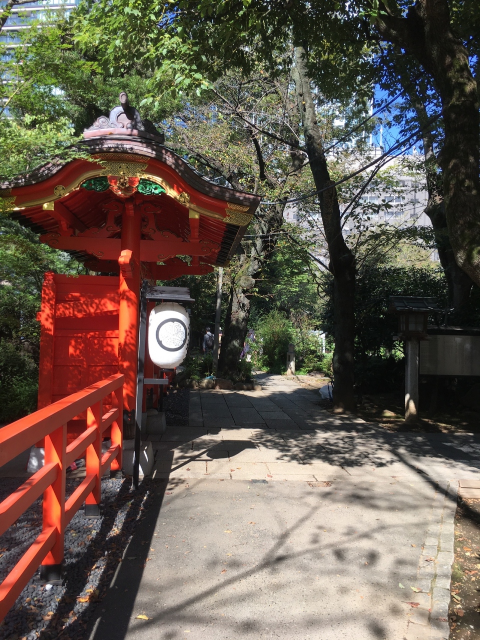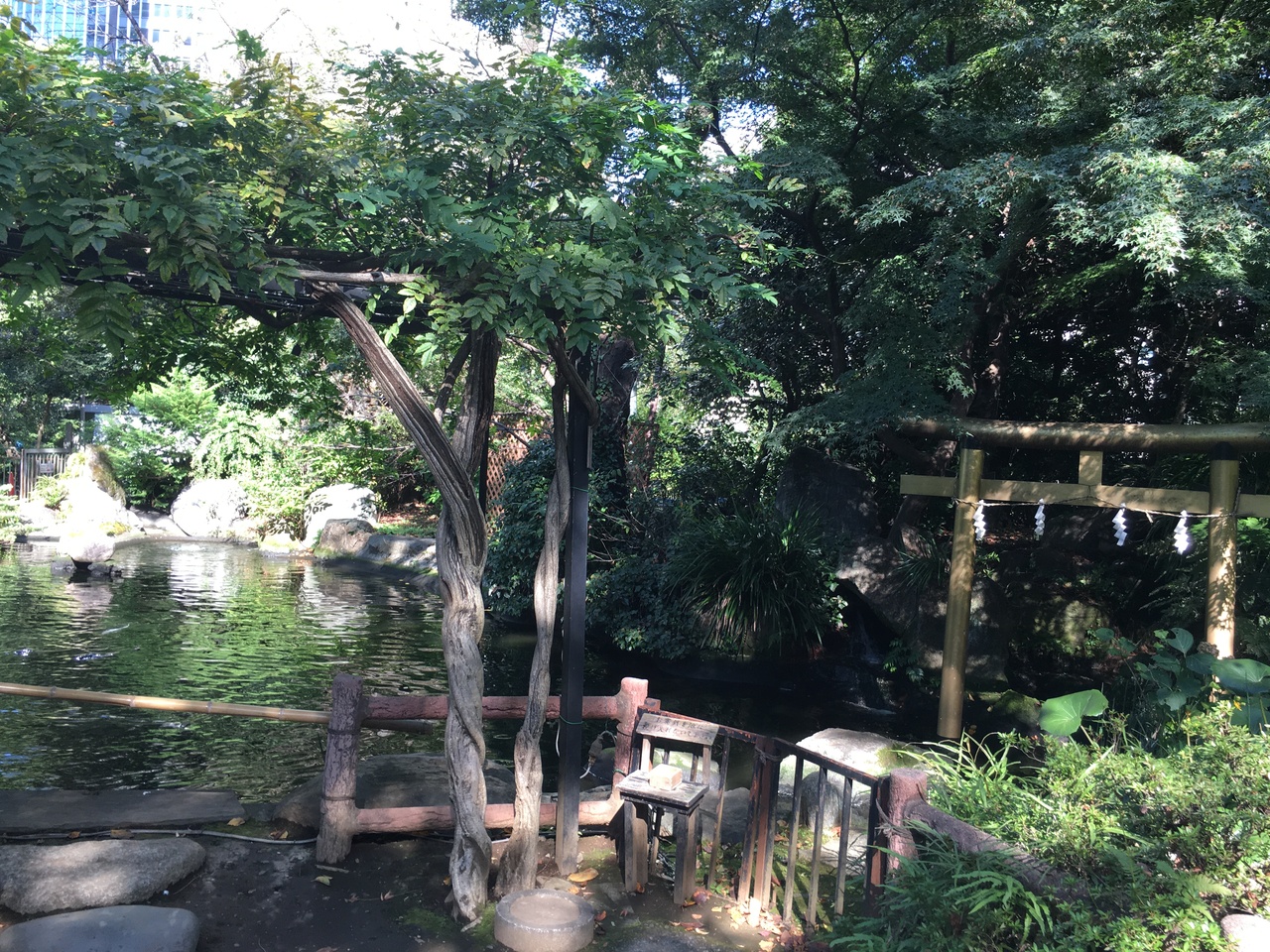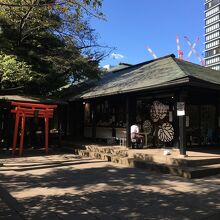 高台にあり、坂道か階段で行くこととなりますが、他にエレベーターもありました。赤い旗が目立ち、札がたくさん奉納されていました。池があり庭園のようになっていたので風情がありました。都会の乾燥を忘れられる場所でした。