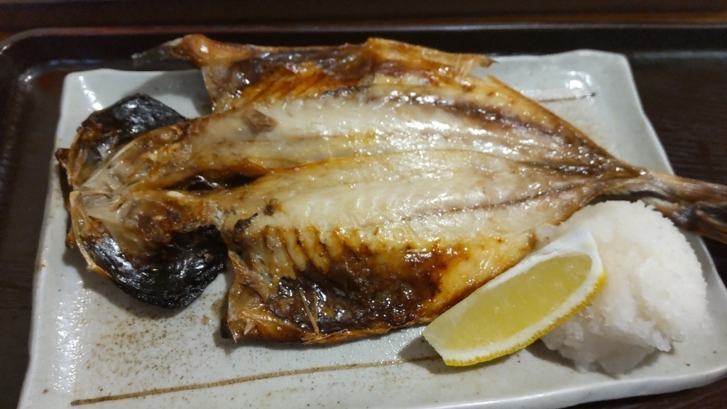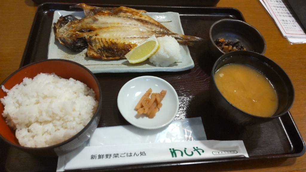 肉厚のアジの干物は味も濃いめでご飯に良く合う。
