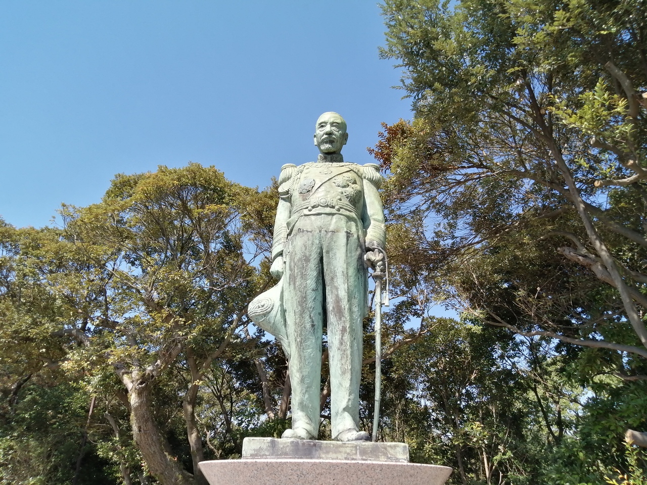 多賀山公園内の一画に立っています。東郷平八郎とはかつての日本海軍の連合艦隊司令長官。歴史の授業で習うので皆知っている人物だと思いますがなぜこの場所に…。元々岡山県にあったものを彼の出生地が現在の鹿児島市加治屋町だったことからこの地に移されたようです。また、高台のたもとには遺髪を納めた墓もあります。