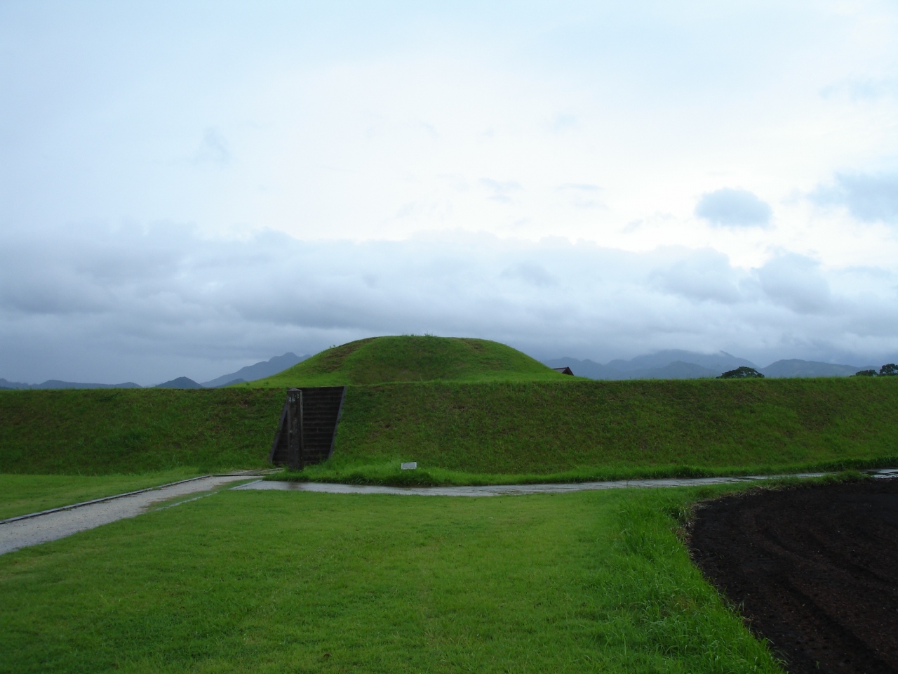 西都原古墳群の中のメイン古墳のひとつです。2重の円墳で内部は古墳内では唯一の横穴式石室になっています。206号墳の通称で鬼が一夜にして作り上げたという話から名付けられています。内部の石室も公開されていました。