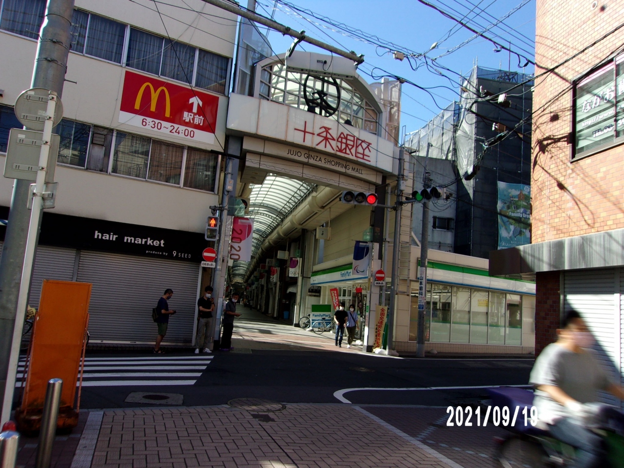 この十条銀座商店街はJR埼京線十条駅前広場から北に延びる商店街です。商店街はアーケードです。雨でも安心して買い物ができます。生鮮食品は日常の雑貨などの店が並んでいます。最近は徐々にチェーン店の飲食店などができてきています。大型スーパーはありません。第二次世界大戦後からの店もいくつかのこっています。