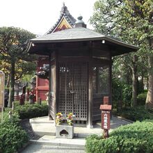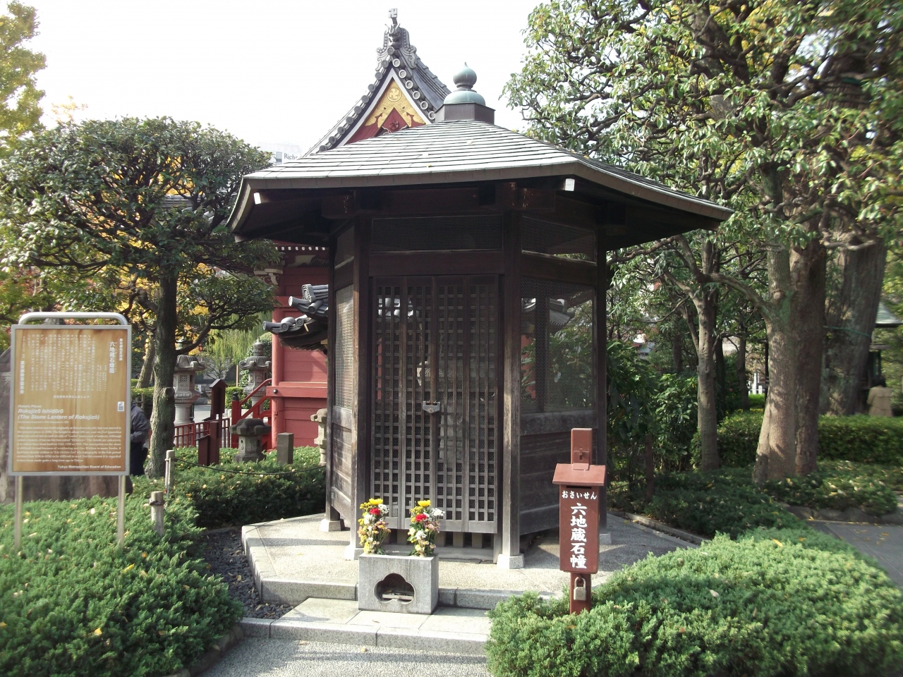 浅草寺境内の影向堂からほど近いところにある、六角形のお堂の中に納められた石灯籠です。灯籠自体は外からはよく見えませんが800年以上前に造られた歴史のあるもので、明治になってこちらに移設されたそうです。お堂自体もかなり傷みがあって、年月の経過を感じさせます。