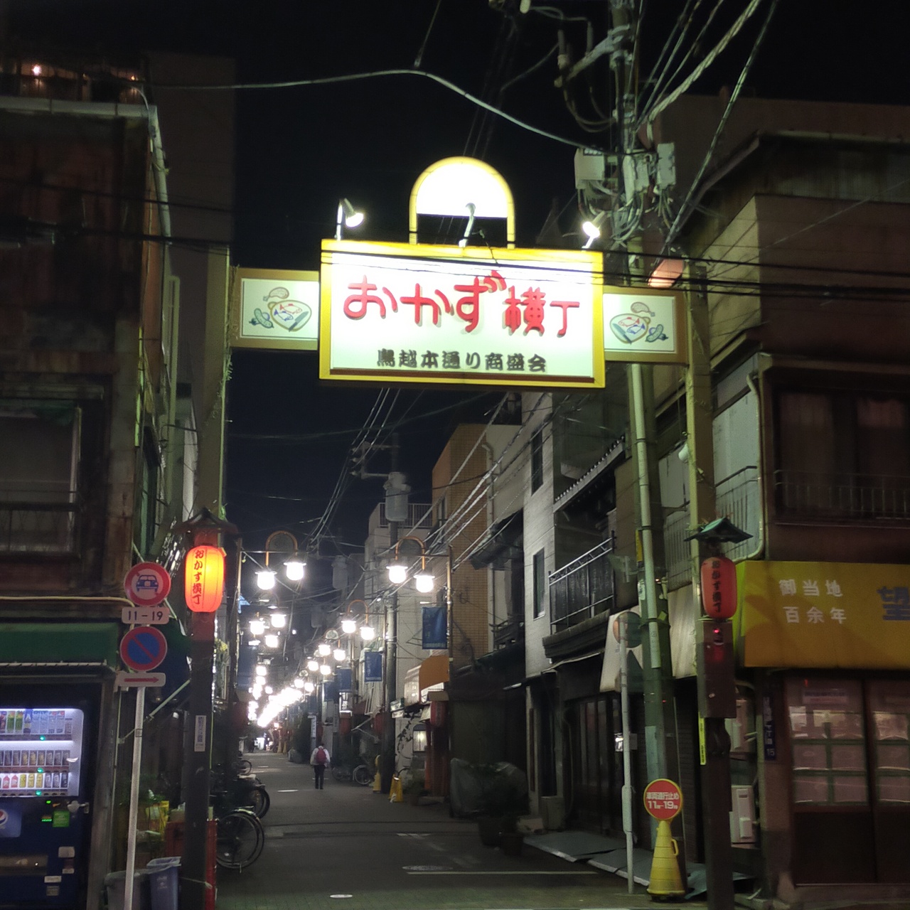平日の夜に行ってきました。20時ぐらいだったからか開いているお店はほとんどありませんでした。空いている時にはみていなかった、看板やメニューをみられました。漬物屋さんでは、他を節約しても味噌と漬物は贅沢したい、とかかれていて、ぜひ買ってみたいなとおもいました。おかず横丁で人気の居酒屋さん、まめぞは混雑している感じでした。