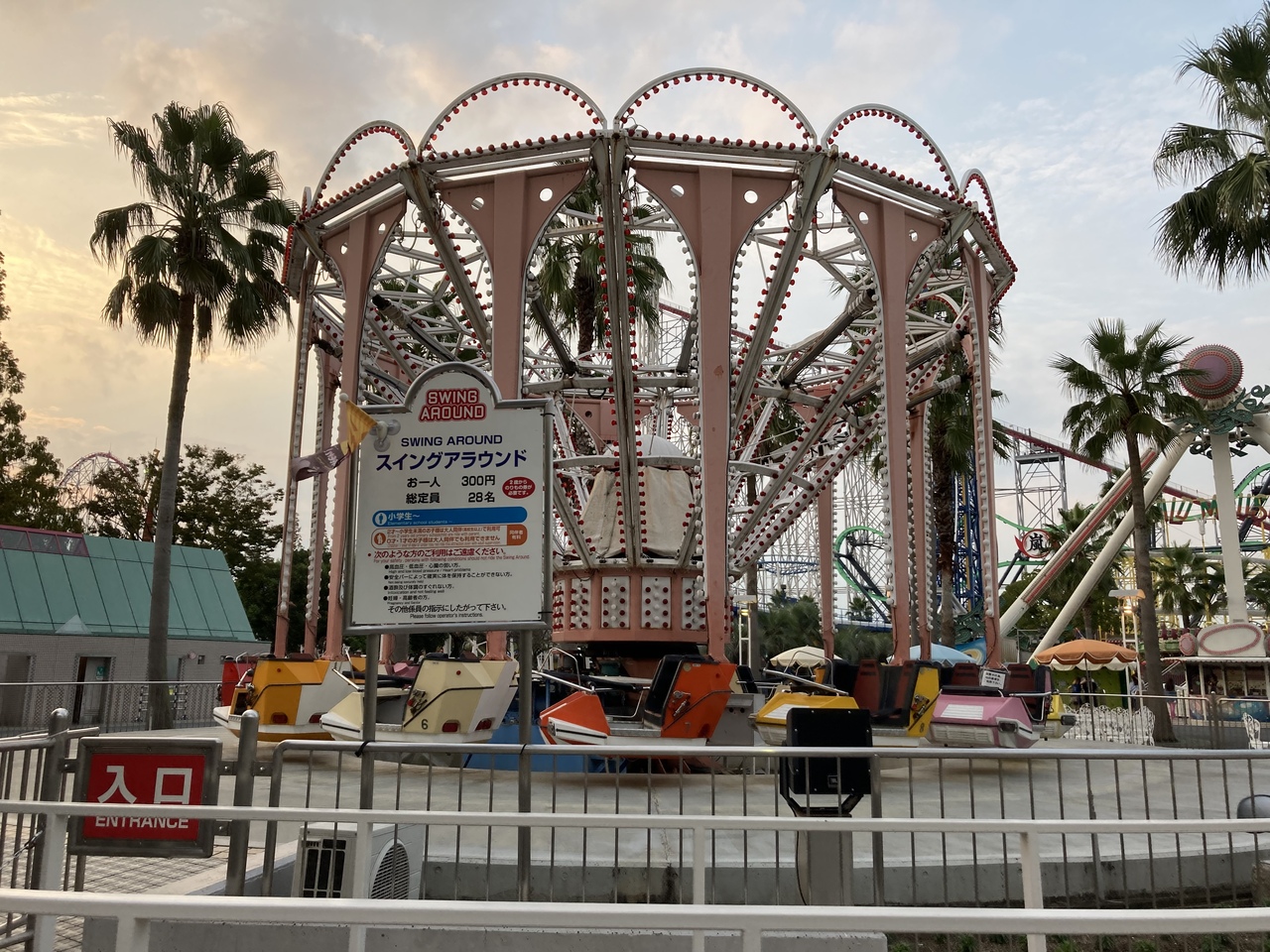 三重県のナガシマスパーランドにあるアトラクションのひとつ。大観覧車の近くにありました。乗り物に乗って、くるくるまわるアトラクションで、大人同伴で2歳から乗れる乗り物でした。小さな子から小学生くらいまで楽しめる乗り物だと思います。