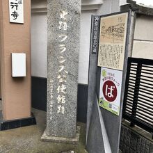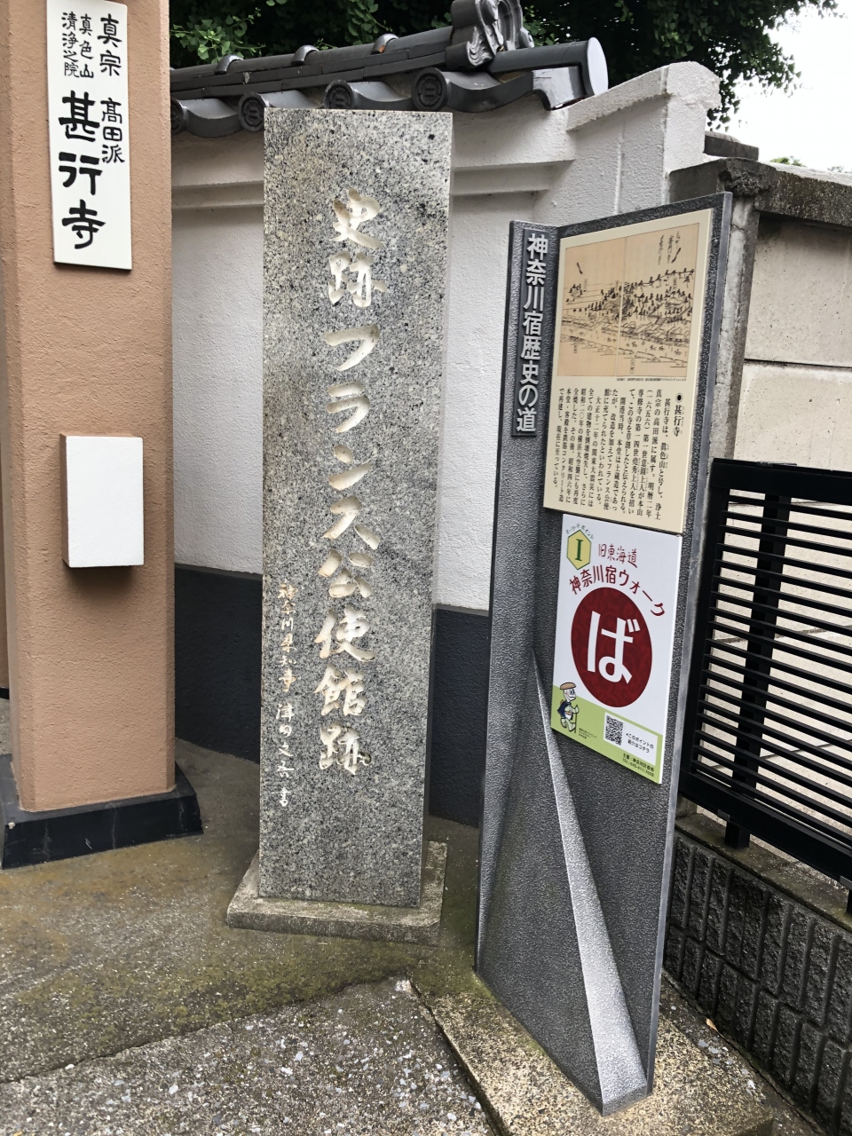 山門横に、フランス公使館跡の石碑と、ガイドパネルが設置してありました。本堂は当時のものではないですが、神奈川宿ではほかにも、イギリス、アメリカ、オランダの公使館が置かれた寺院もあって、幕末の歴史を身近に感じることができます。