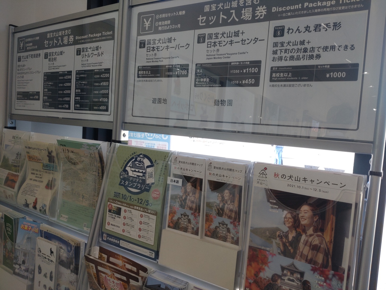城山の麓、駐車場の近くにある観光案内所です。駐車場が混雑して満車だったのには困りましたが、立地は良いと思います。各種パンフレットを入手できるだけでなくモンキーパークやモンキーセンターと犬山城のセット入場券を販売していました。