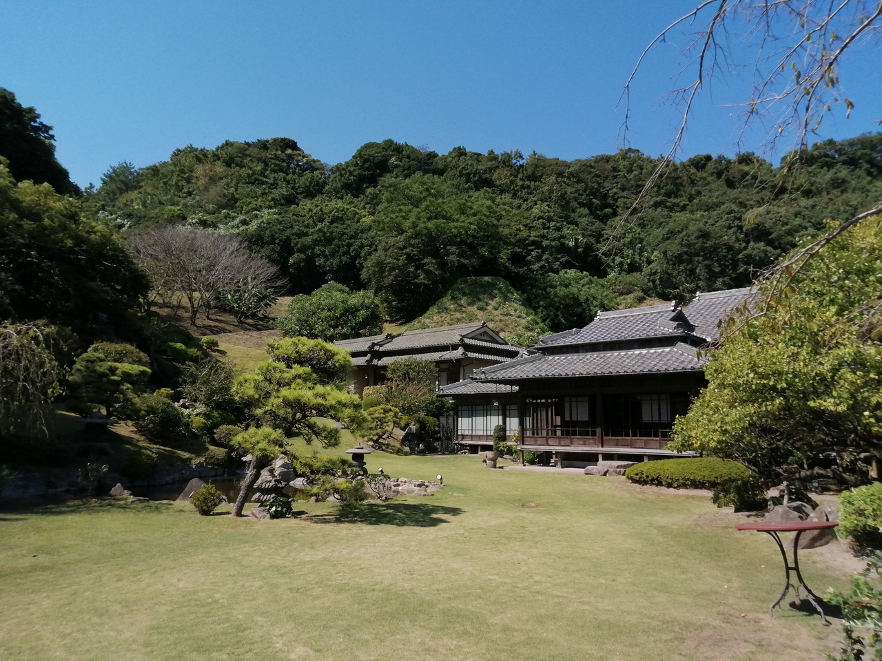 かつての薩摩藩の島津重富家の邸宅です。現在は結婚式などで使われるマナーハウスとなっています。江?時代の重厚な武家屋敷造りと庭園をちょっと見学させてもらいました。確かに素晴らしいんですが、私には完全に場違いで妙に居心地が悪い。早々に退散いたしました。