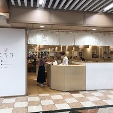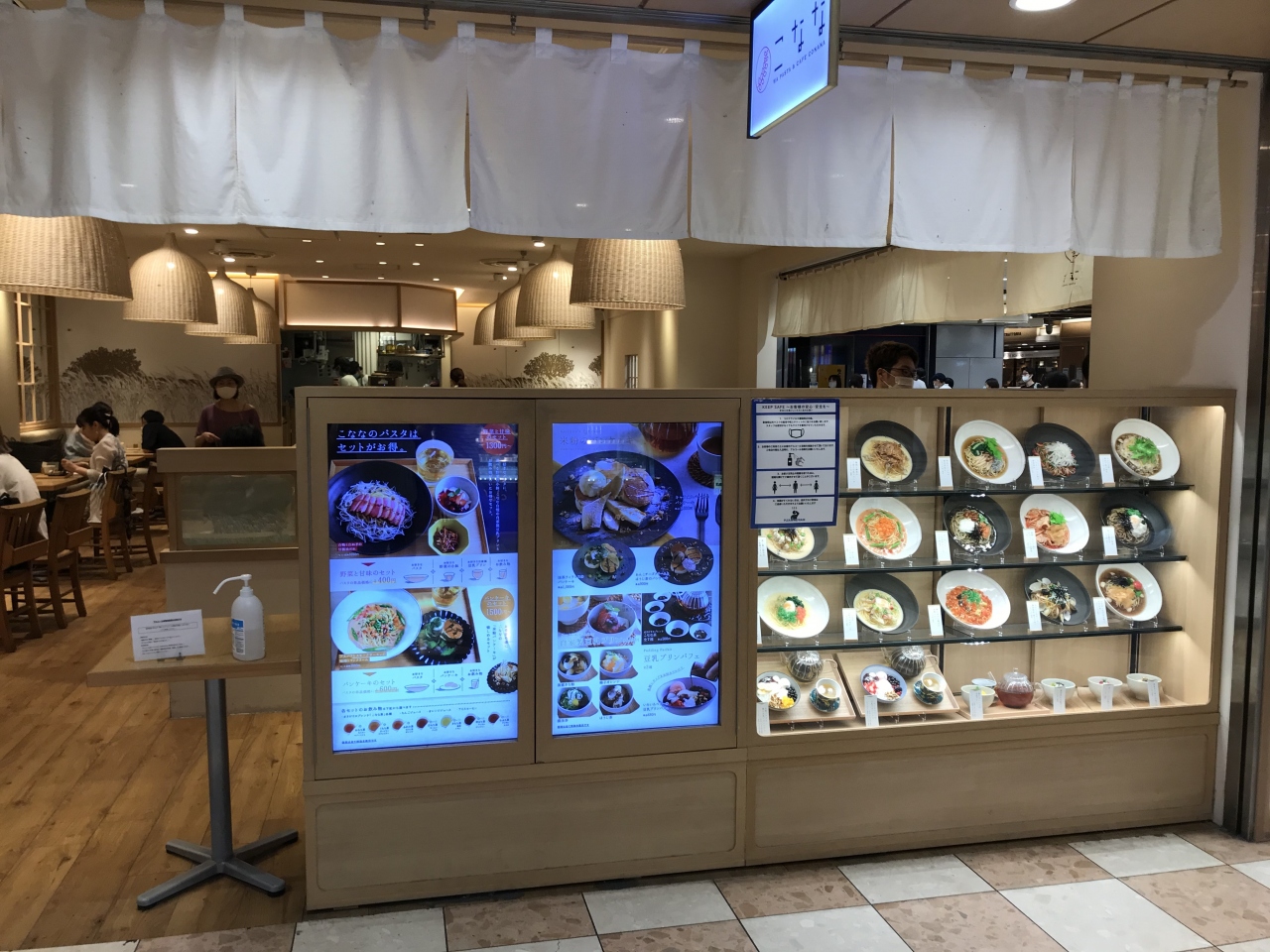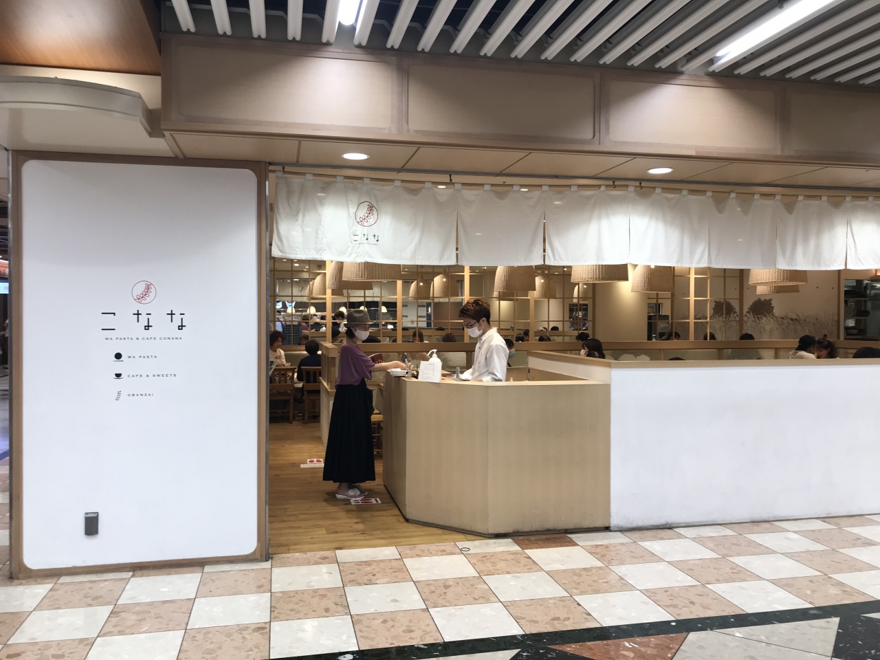 こななは、京都ポルタにある和風パスタの専門店です。日本の味、素材を生かした「だし風味」、香ばしい「醤油風味」、深いコクの「味噌風味」にこだわっているお店です。家内と一緒だったのであっさりしたものが食べたいということでこのお店にしました。ランチメニューは、和パスタ+サイドメニュー+ほうじ茶がセットになっています。私が頂いたのは、グリーンアスパラとスモークサーモンの味噌トマトクリーム。たっぷりの青ねぎと黒胡麻がトッピング。パスタは細麺で、スモークサーモンは角切りになっていました。ソースは味噌のコクがあり、クリーミーでまろやかな味わいの中にトマトの程よい酸味もあり、とても美味しかったです。