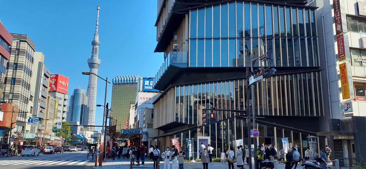 東京メトロ浅草駅からすぐ、雷門の前にある大きな観光案内所です。