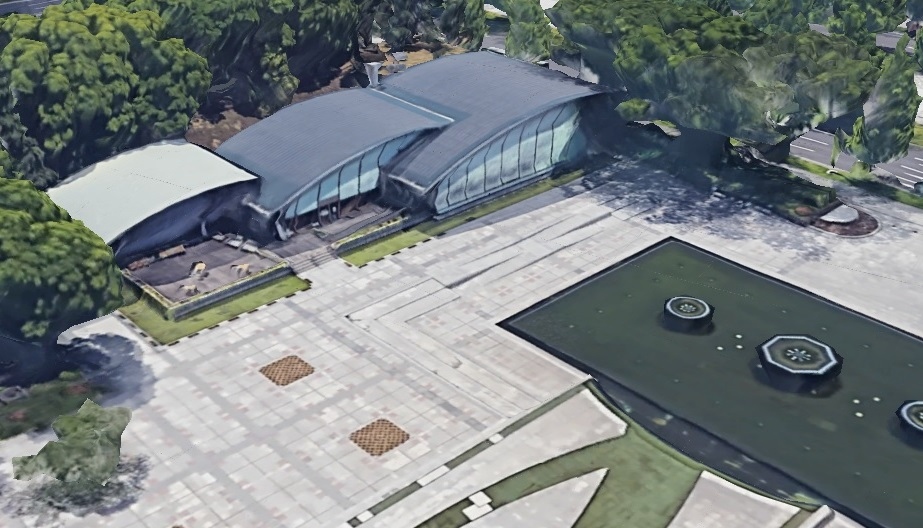 レストランには、噴水の方向に張り出しているオープンテラスが設置されていて、噴水等を