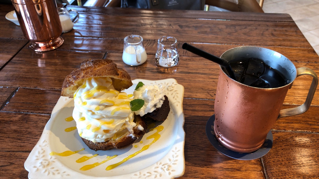 バームクーヘンが有名な沖縄のお菓子屋さんです。北谷のアメリカンビレッジには、広いカフェがあります。コーヒーは、その場で淹れてもらえる本格的な物です。マンゴーソフトクリームシューは、あまりマンゴー味がしなくて、少し残念でした。