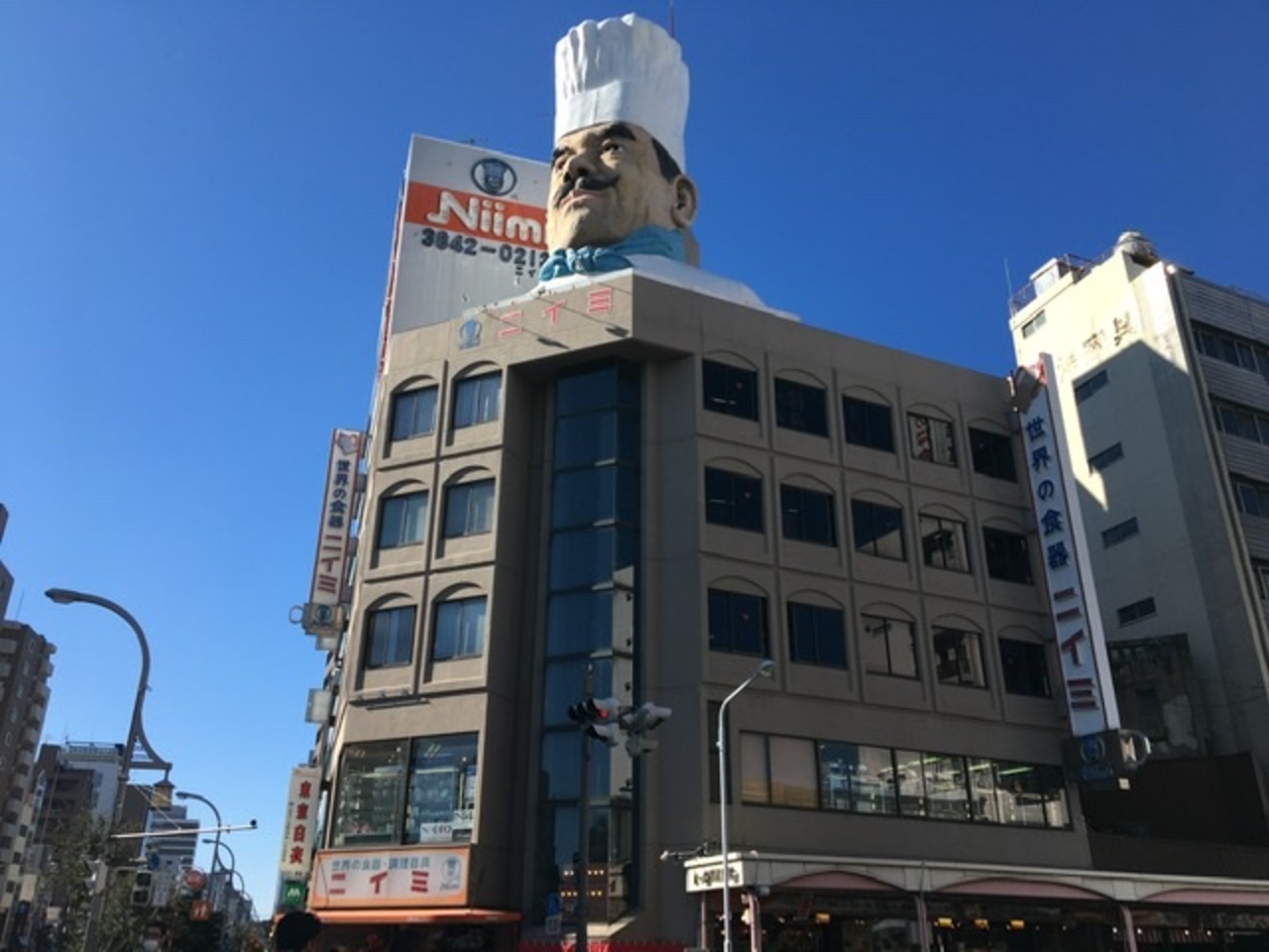 合羽橋商店街の角にある、大きなお店です。屋根の上にはジャンボコックがいて、迫力があります。店内は業務用の食器や調理器具が多いですが、見ているだけでも楽しめます。個人的には、レトロ柄のお皿セットがあり気になりました。