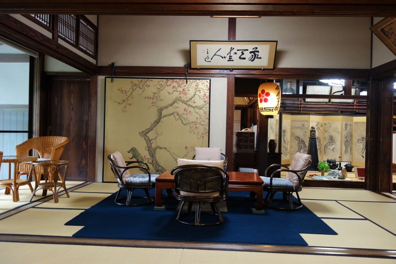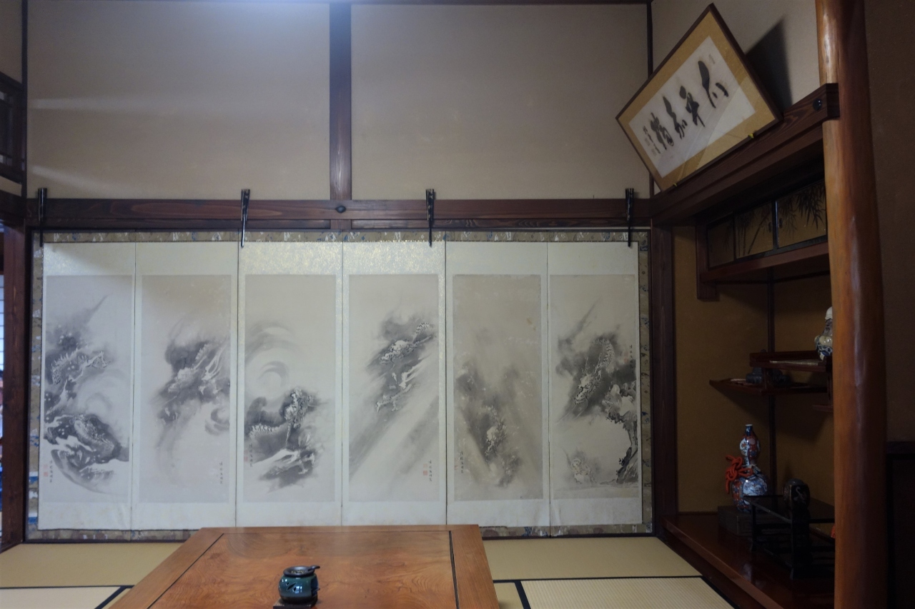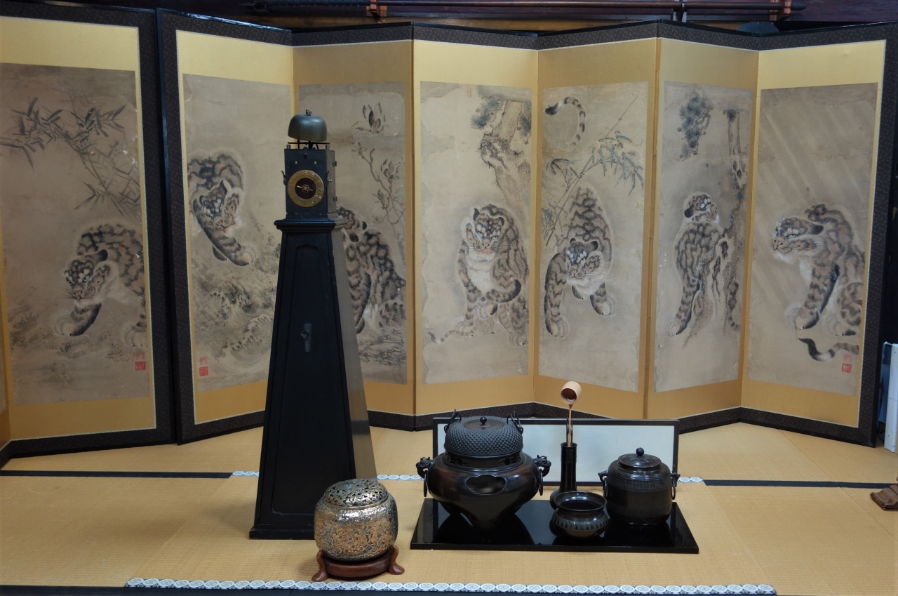 中は昔の商店らしく鰻の寝床のように奥行きが物凄く在りました。いわゆる町屋で、江戸時代の屏風やら時計、茶道具、さまざまな物を見る事が出来ました。