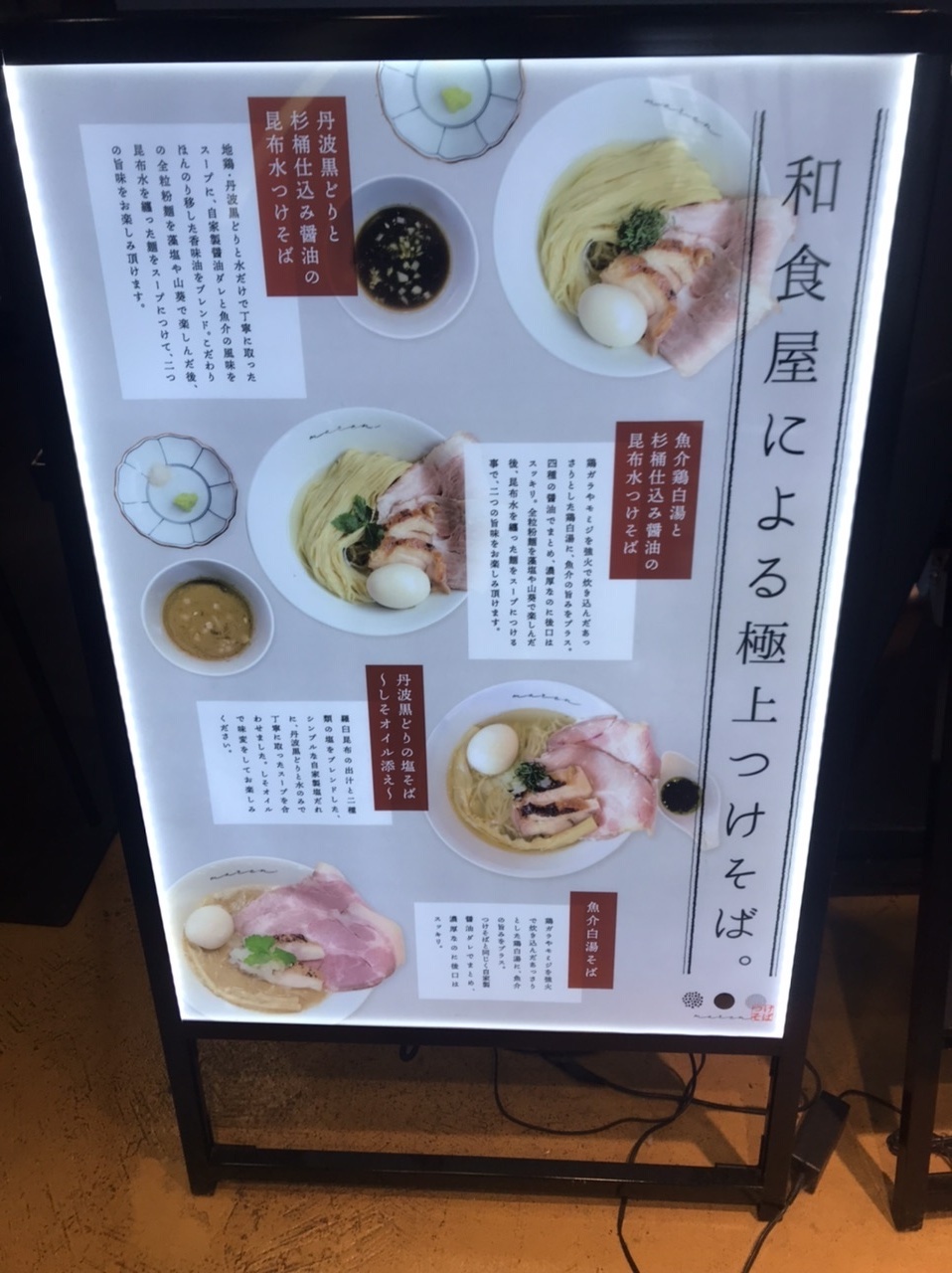 京橋のKIKI京橋の1階にある、ラーメン・つけ麺の店です。魚介白湯そば850円を注文。スープは魚介系だが、他では味わったことのない独特の味で美味しい。レアチャーシューは少し豚の臭みが残っているのが残念。