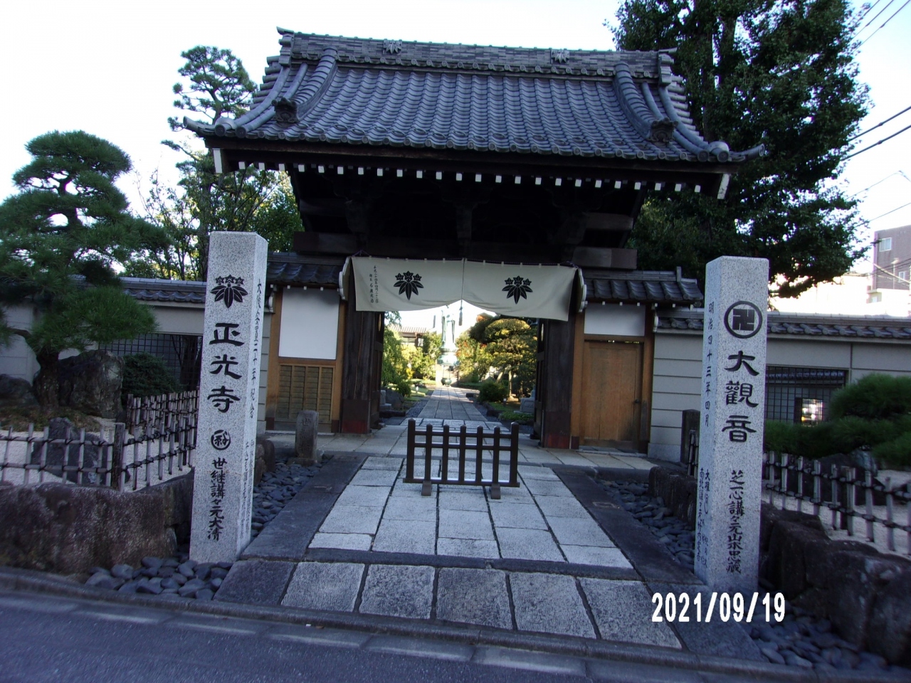 この正光寺は浄土宗で鎌倉時代の創建です。古い歴史があります。創建時は今よりも荒川に近かったようです。その後今の場所に移築しましたが昭和末期に焼失したのです。それだ今は新しい本堂です。その姿は重厚ですばらしいものです。境内に観音菩薩立像があります。