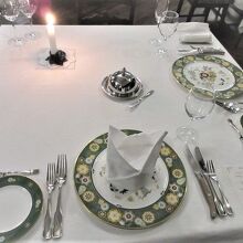 クラシカルホテルなので、重厚な雰囲気でよい気分。お皿の花柄に癒される・・