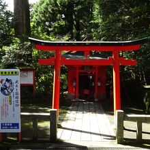 参道の石段を登って行くと、第5鳥居の下、途中に有りました。